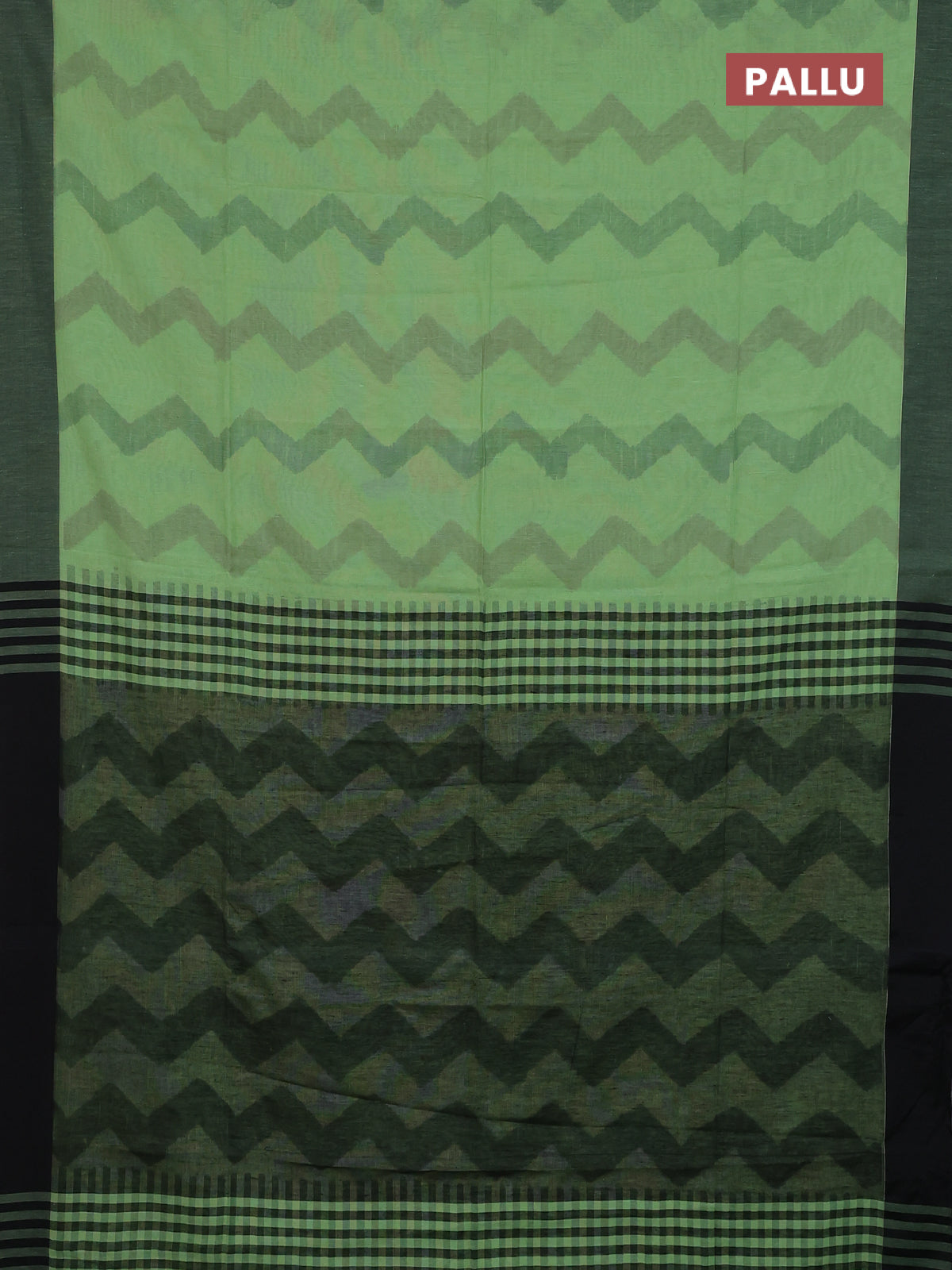 Bengal soft cotton saree pista green and black with allover weaves and simple border