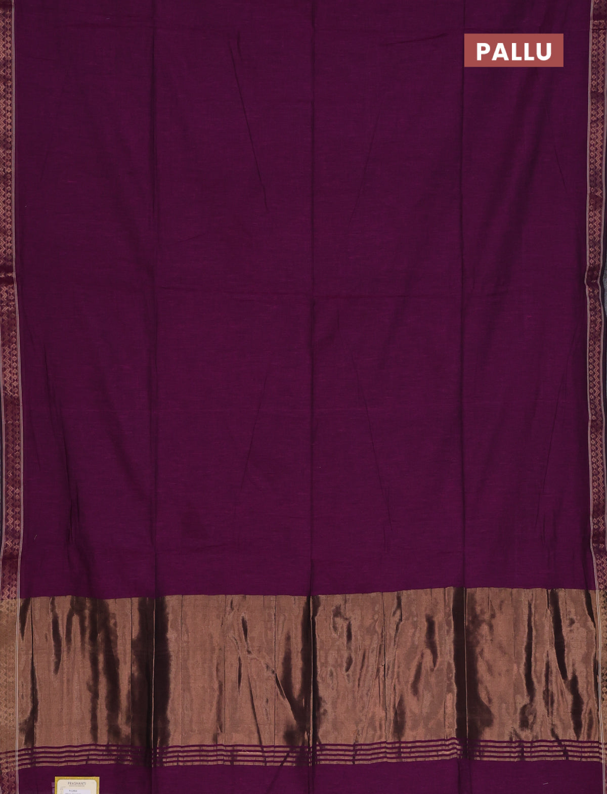 Bengal soft cotton saree purple and blue with plain body and zari woven border