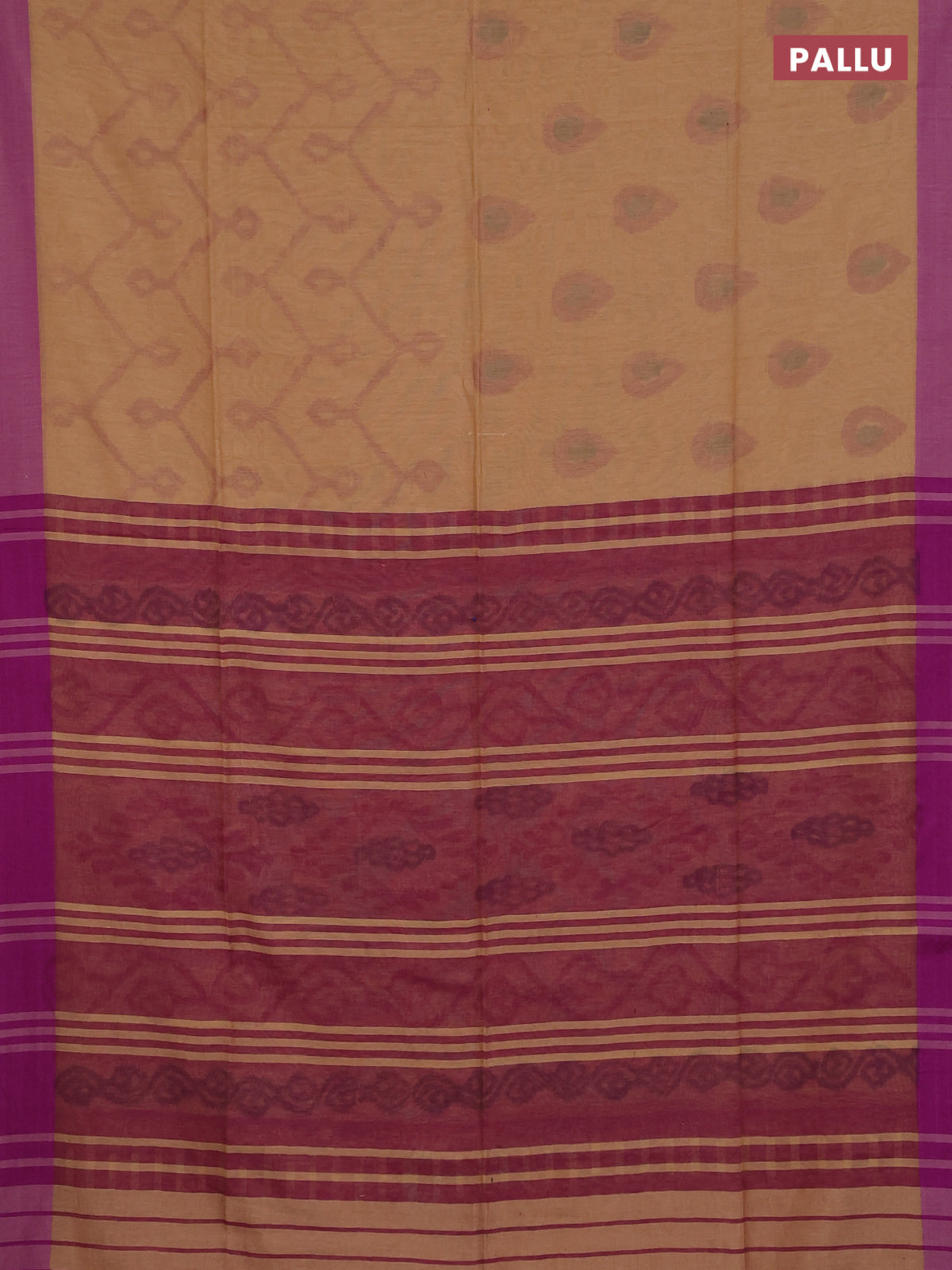 Bengal soft cotton saree sandal and purple with allover butta weaves and simple border