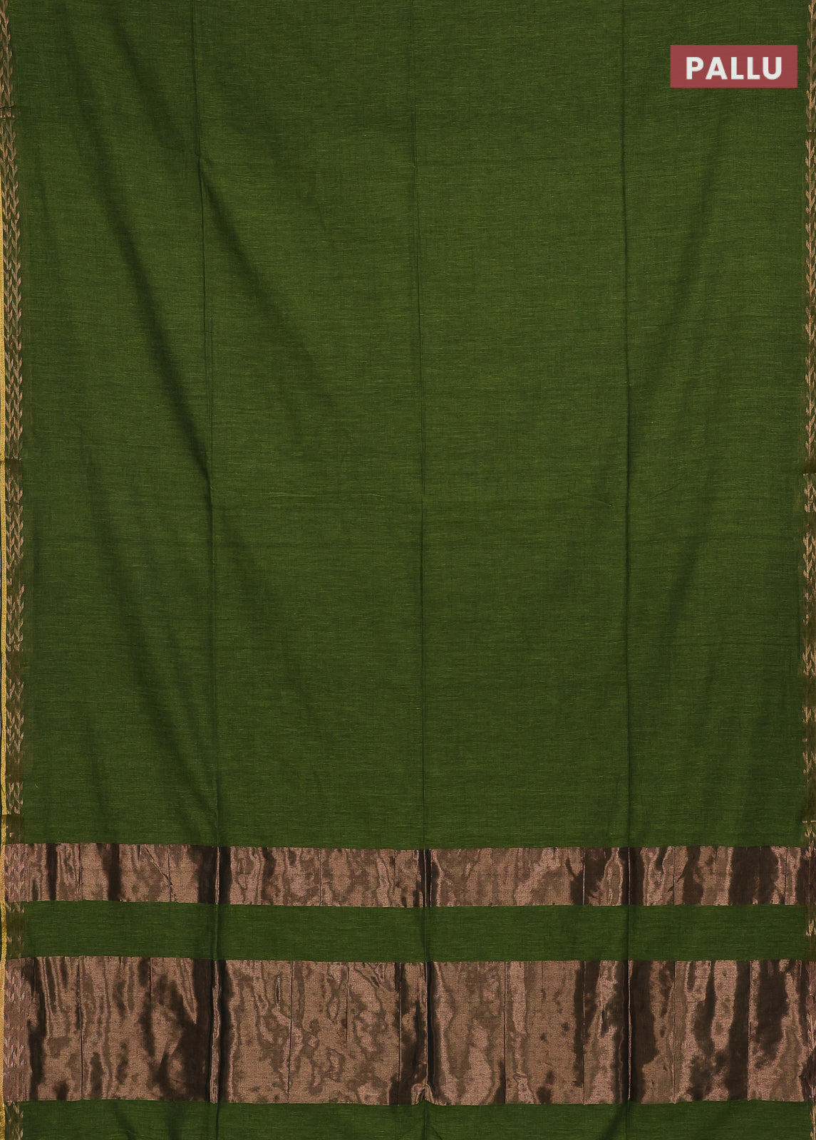 Bengal soft cotton saree sap green and violet with plain body and zari woven border