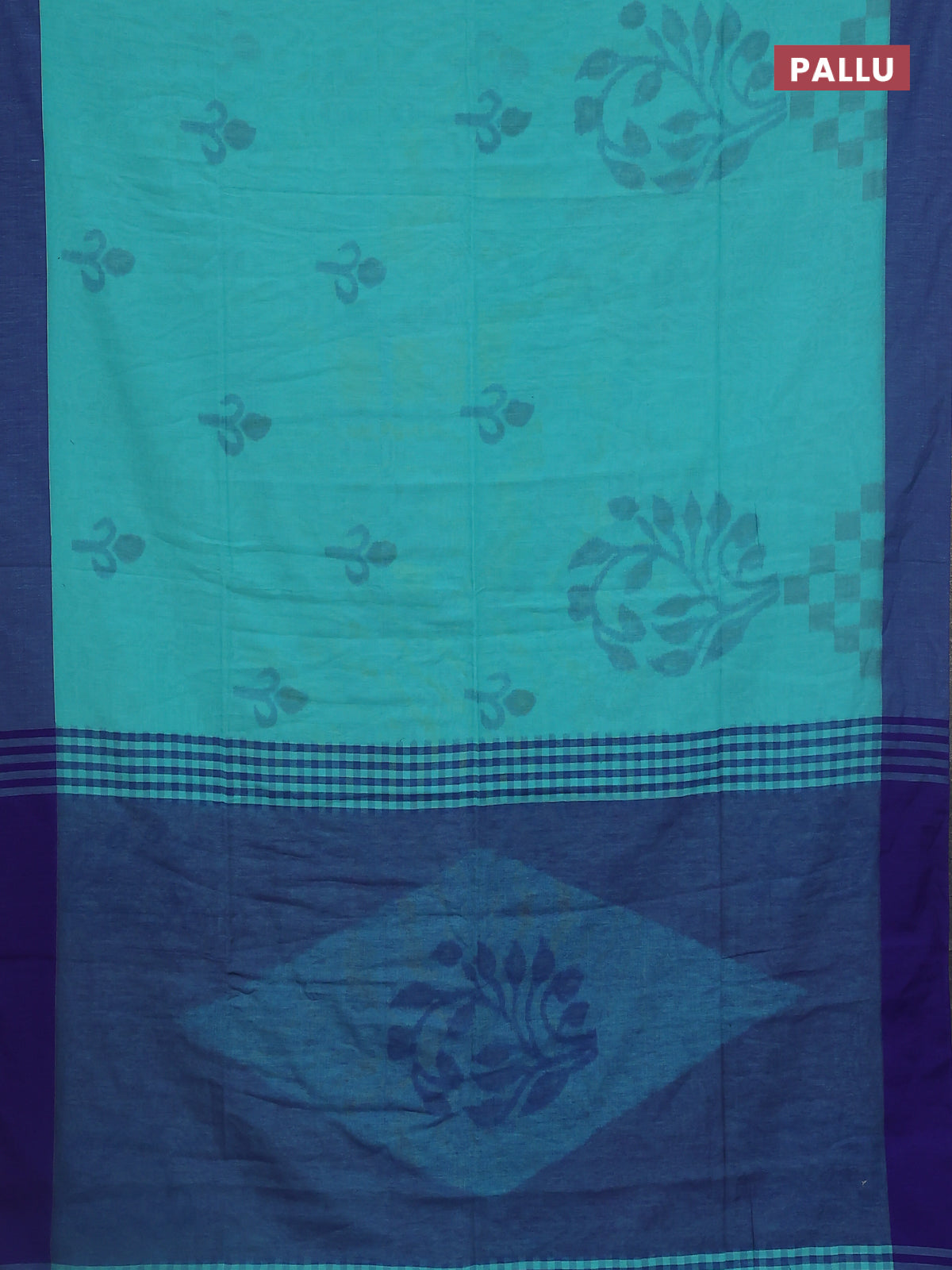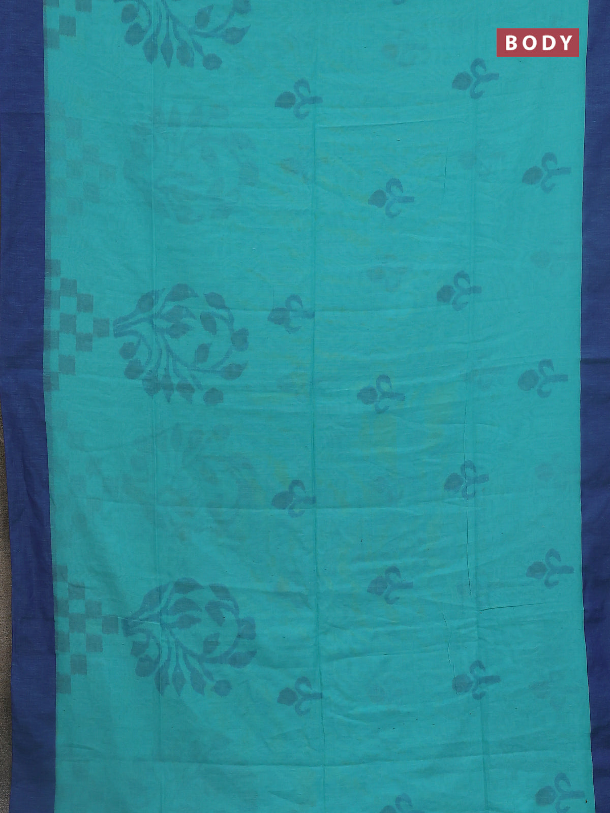 Bengal soft cotton saree teal blue and blue with allover butta weaves and simple border