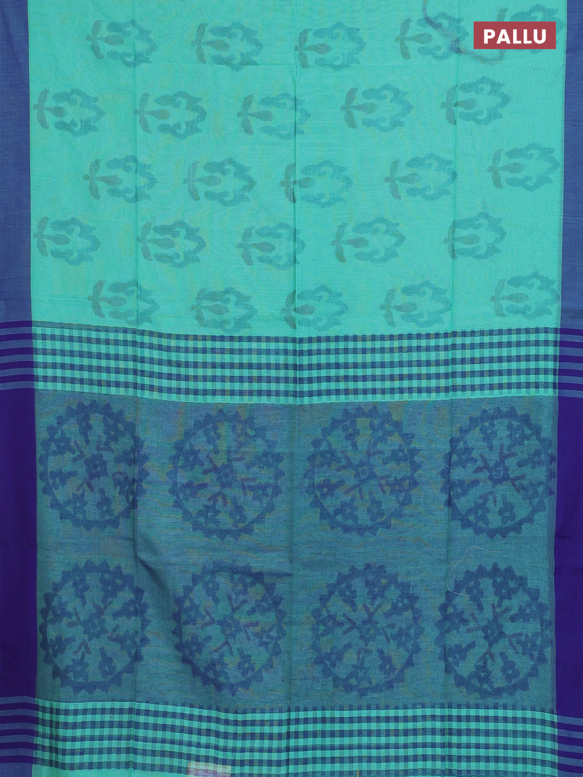 Bengal soft cotton saree teal blue and navy blue with allover butta weaves and simple border