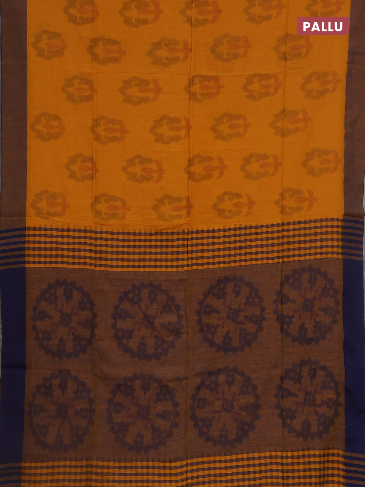 Bengal soft cotton saree yellow and navy blue with allover weaves and simple border