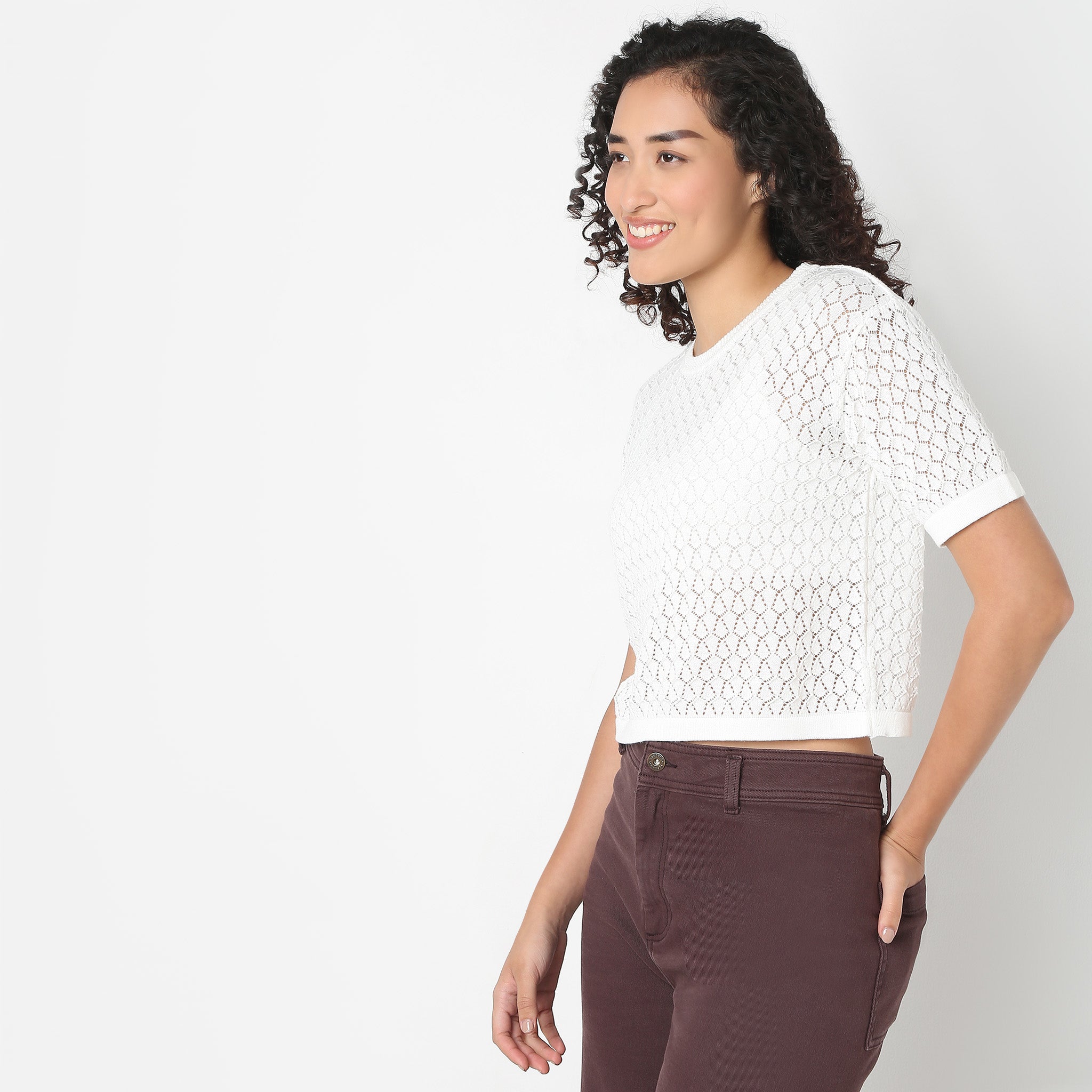 Experience the perfect blend of comfort and style with the Betty Cropped Fashion Round Neck Tee. This tee is crafted to offer a modern, stylish look with its slim fit, making it a must-have in your wardrobe. The soft cotton-polyester blend ensures a breathable and lightweight feel, perfect for any casual outing.