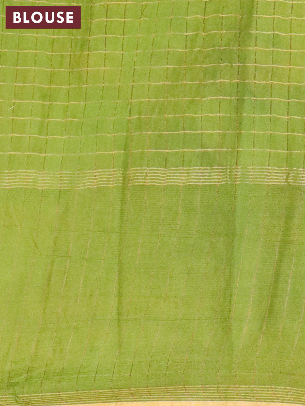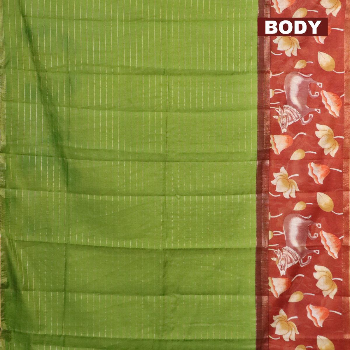 Bhagalpuri saree light green and rust shade with allover zari woven stripes pattern and pichwai printed border