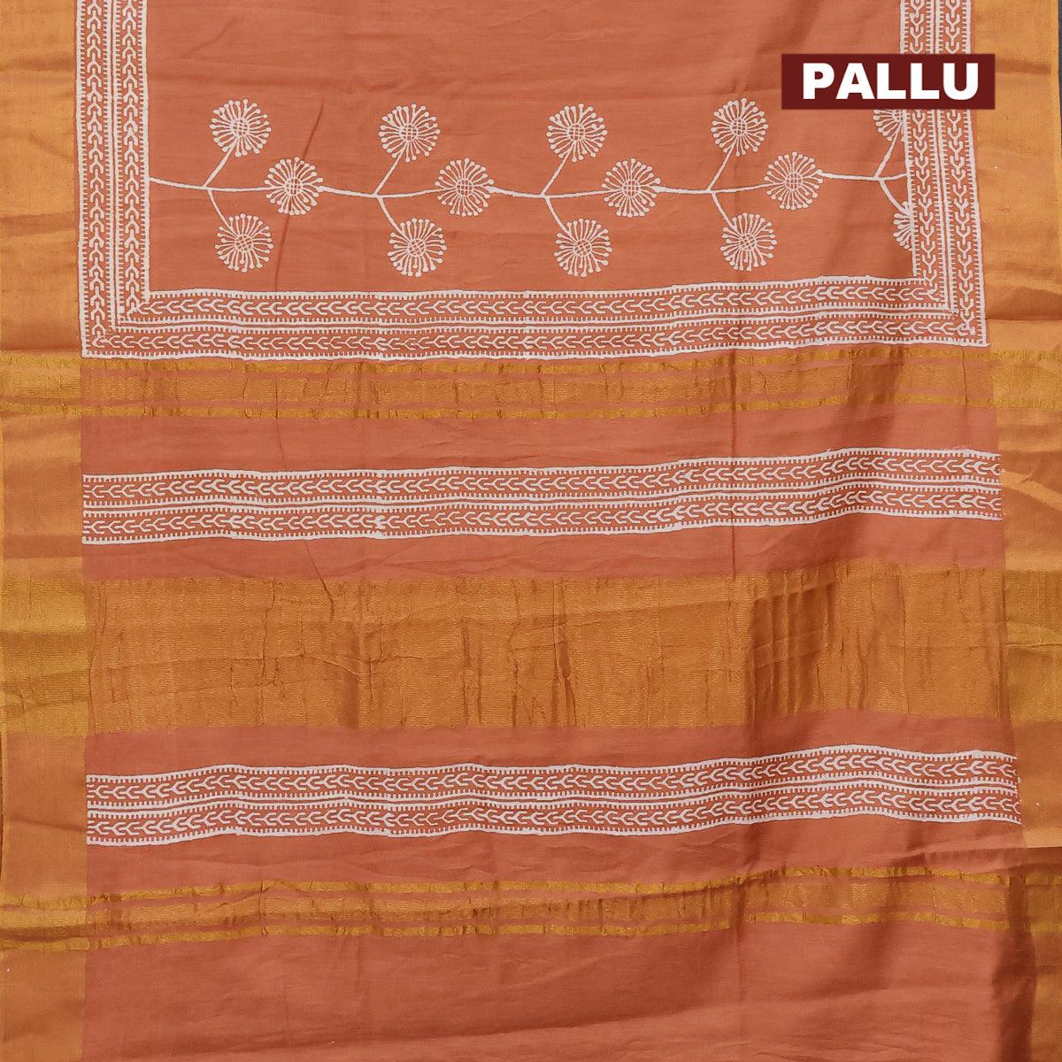 Bhagalpuri saree rust shade with butta prints and zari woven border