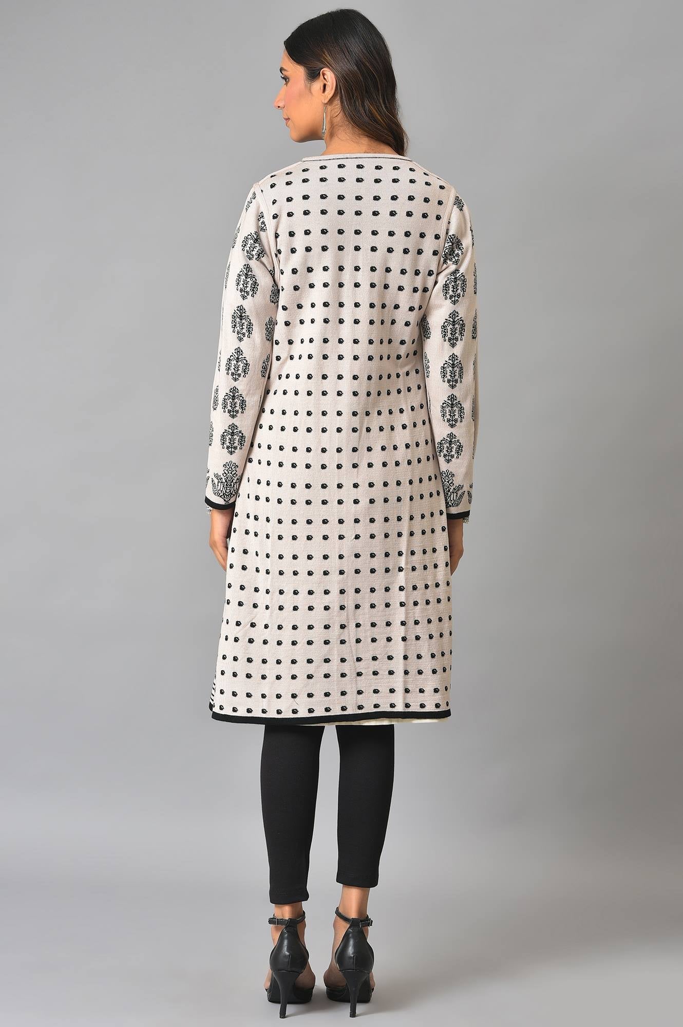 Jet Black And Sweet Lilac Front Open Reversible Jaquard Cardigan With Intricate All Over Linear Design