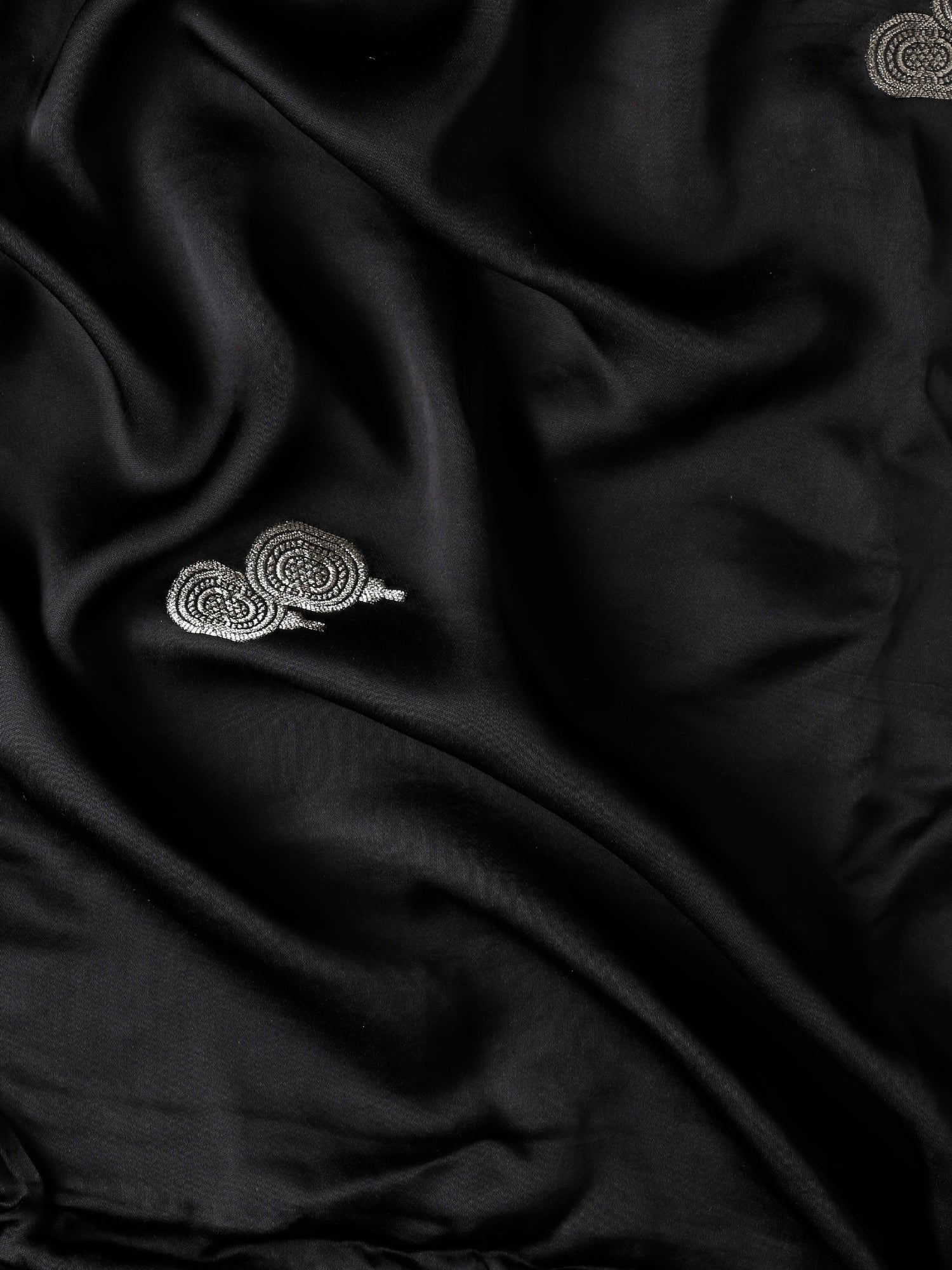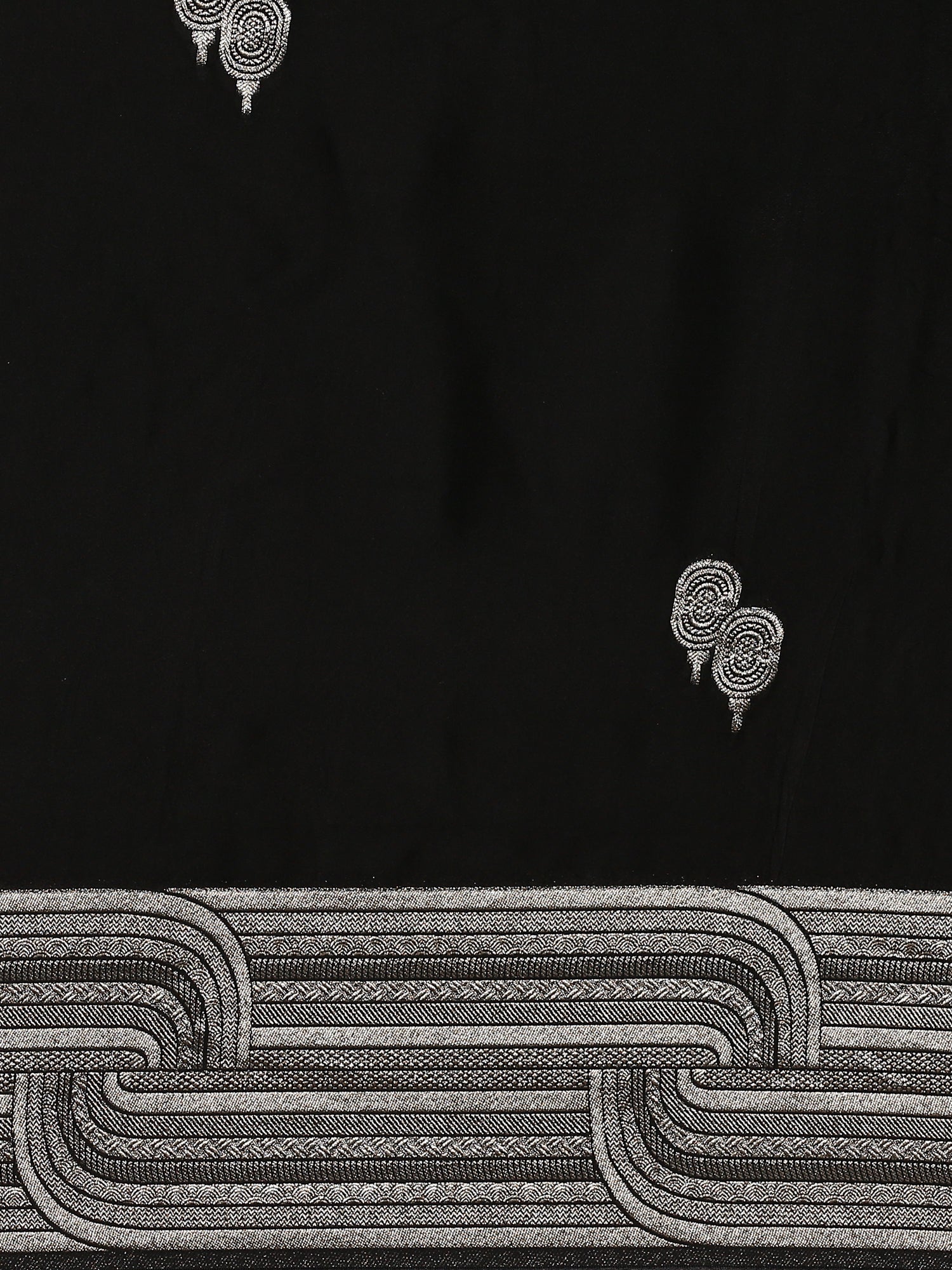 Black banaras silk saree with silver zari motifs & border