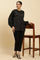 Elevate your wardrobe with this exquisite women's black top, perfect for fusion-inspired occasions. The band neckline adds a touch of sophistication, while the full sleeves provide elegant coverage. Crafted using a woven construction technique, this top exemplifies quality craftsmanship. The straight silhouette flatters various body types, making it a versatile addition to your closet. Embellished details add a glamorous touch, making it suitable for elevated events. The top is fashioned from 100% polyester, ensuring durability and easy maintenance. The satin finish gives it a luxurious sheen, enhancing its overall appeal. This fusion piece seamlessly blends traditional and contemporary styles, making it a must-have for the modern woman who appreciates cultural diversity in fashion. Whether paired with tailored pants for a formal look or styled with a skirt for a more casual ensemble, this top is sure to make a statement. Its versatility allows for numerous styling options, making it a valuable investment for your wardrobe. The black color adds a timeless elegance, ensuring that this piece remains a favorite for seasons to come.