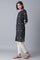 Black Abstract Printed Rayon Shirt-Style Kurta