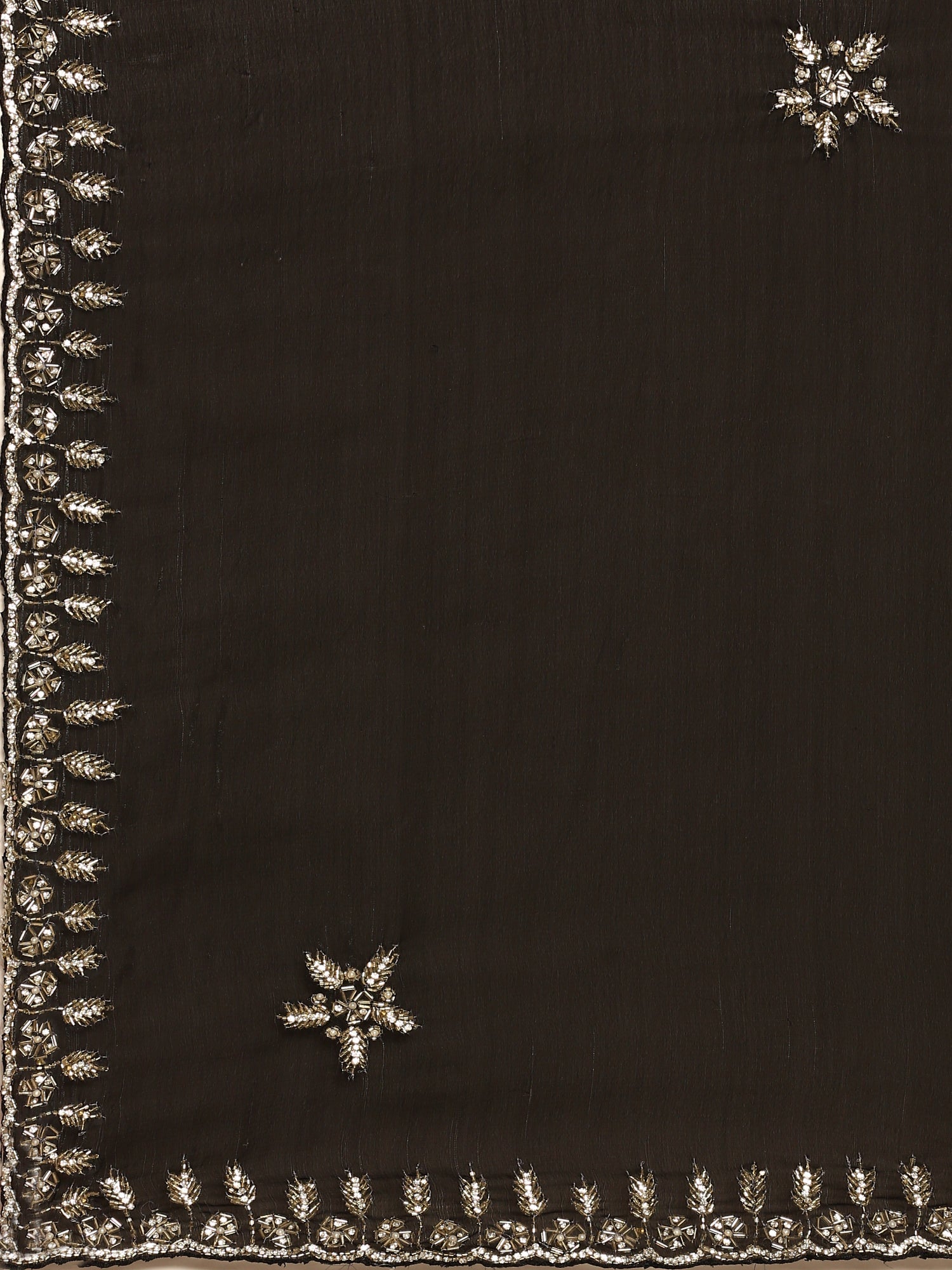Black shimmer tissue saree with cut Dana & Swarovski embroidery