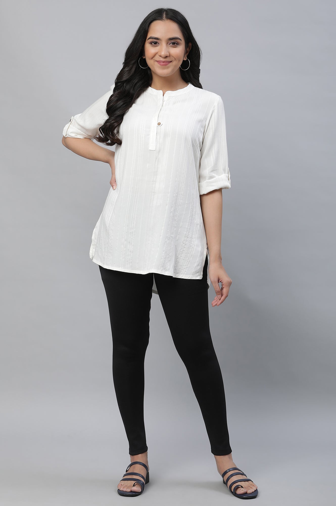 Black Solid Skinny Fit Tights With Criss Cross Waistband