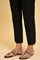 Black Straight Pants With Half Elasticated Waistband. It Has Embroidered Bootas And Scalloped Hem.