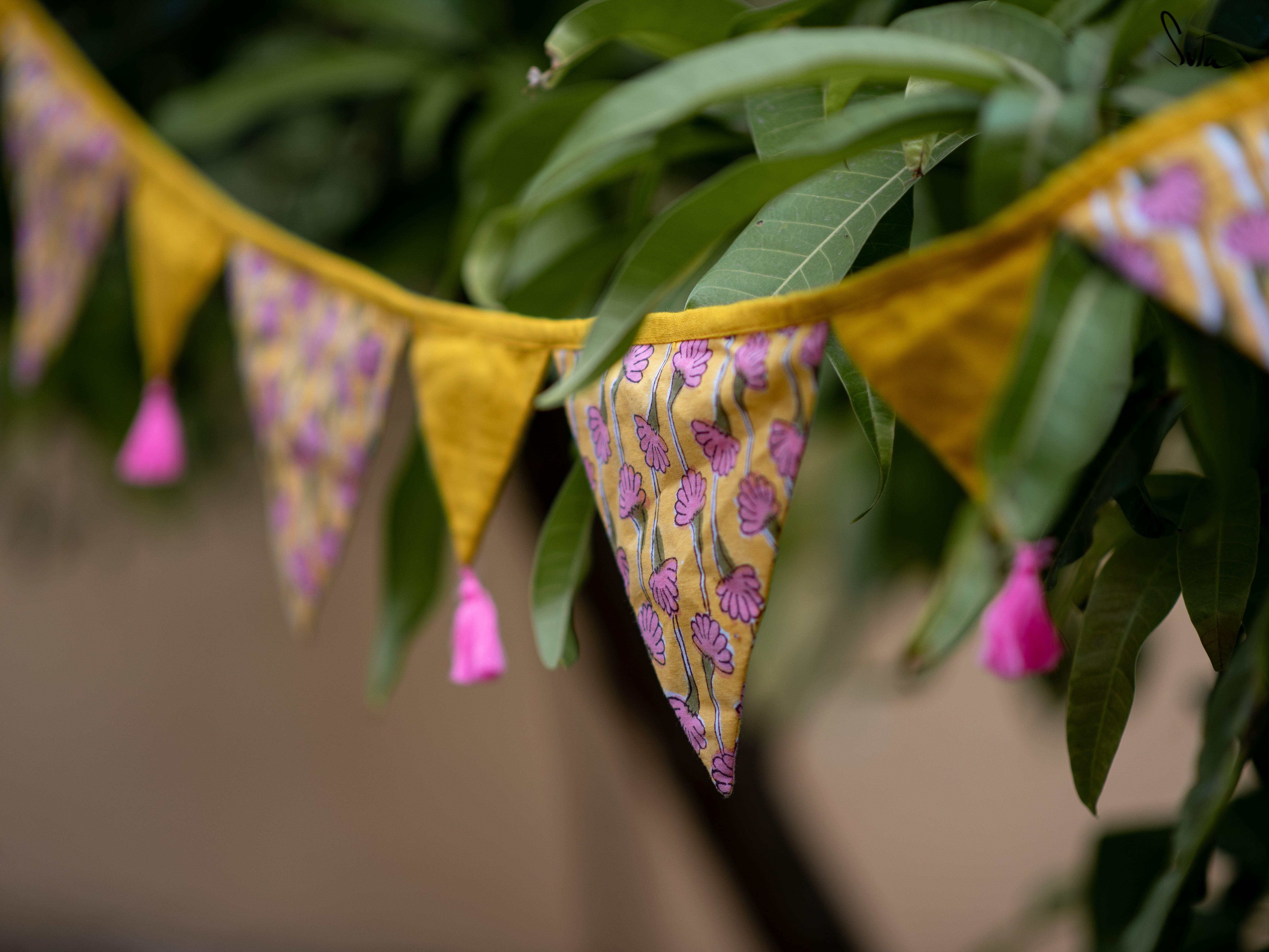 Cotton slub is a type of cotton fabric that has a rough, uneven texture. The cotton is twisted prior to weaving, resulting in a fabric that is light and floaty. The beauty of this fabric is that because of its inherent knots and uneven texture, products made from its are invariably one-of-a-kind. This collection of buntings utilises fabric scraps, enabling Suta to reduce our textile waste and contribute towards a greener planet.