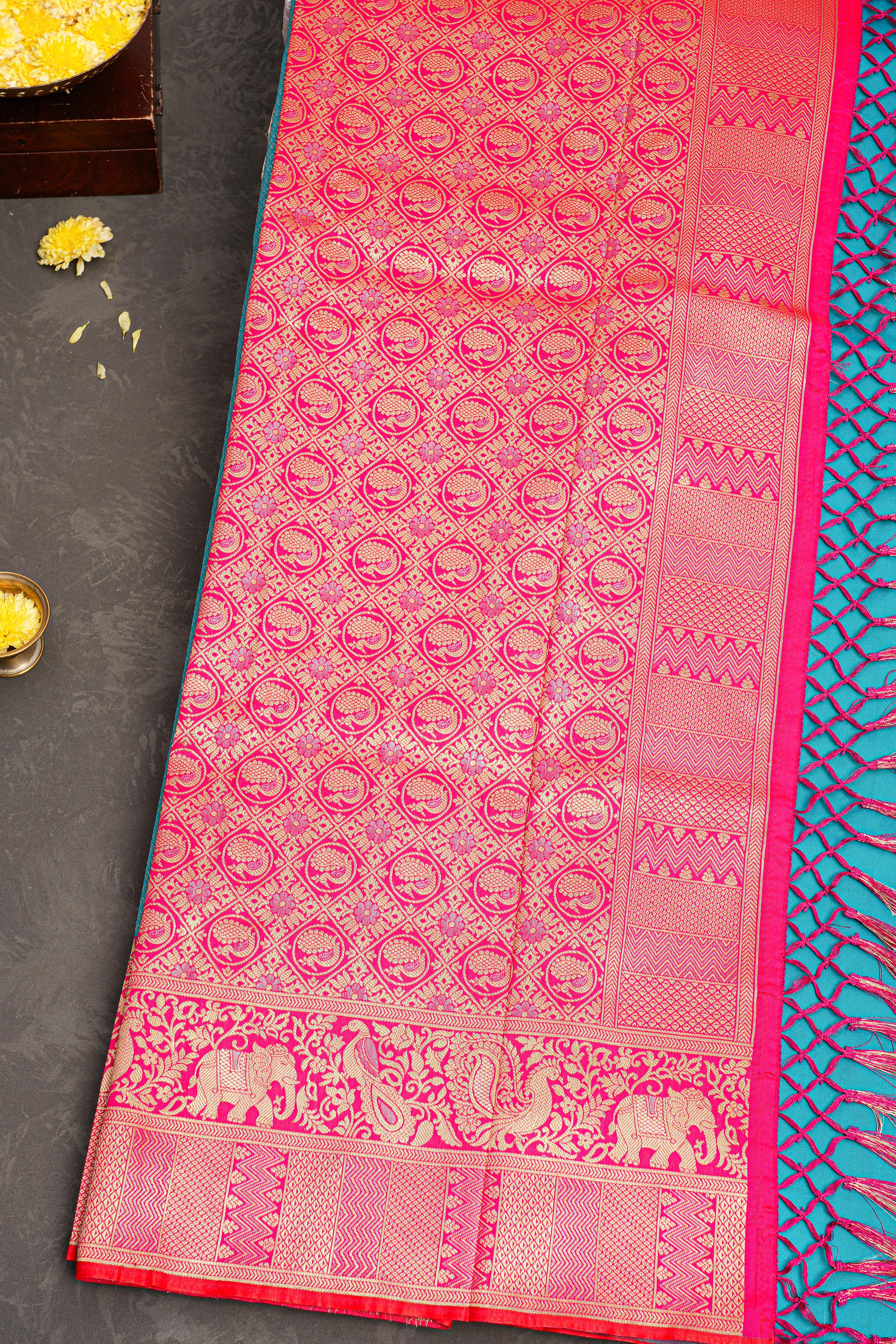 BLUE and DARK PINK BROCADE SILK Saree with BANARASI FANCY