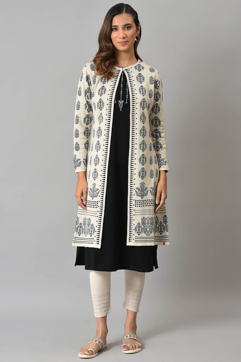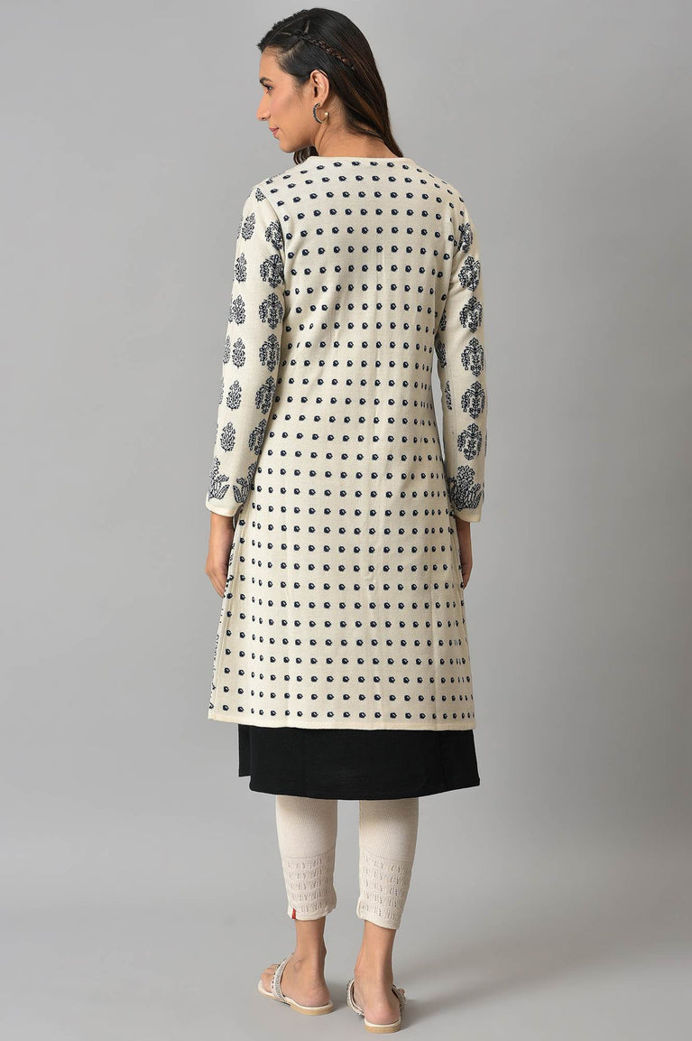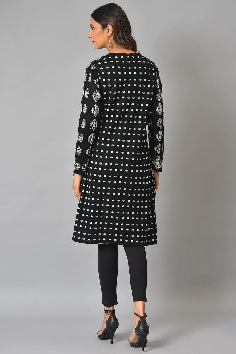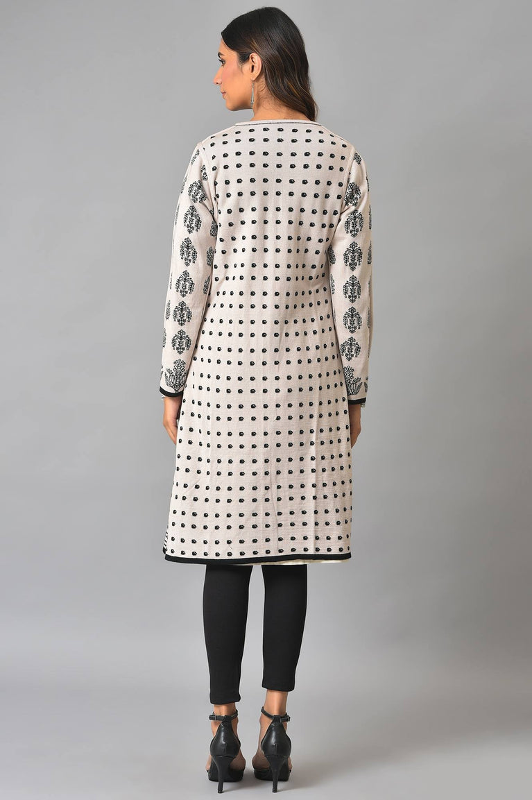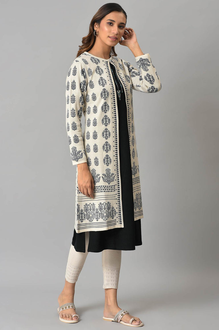 Dual Coloured Front Open Long Line Reversible Cardigan With Minimal Placement Design