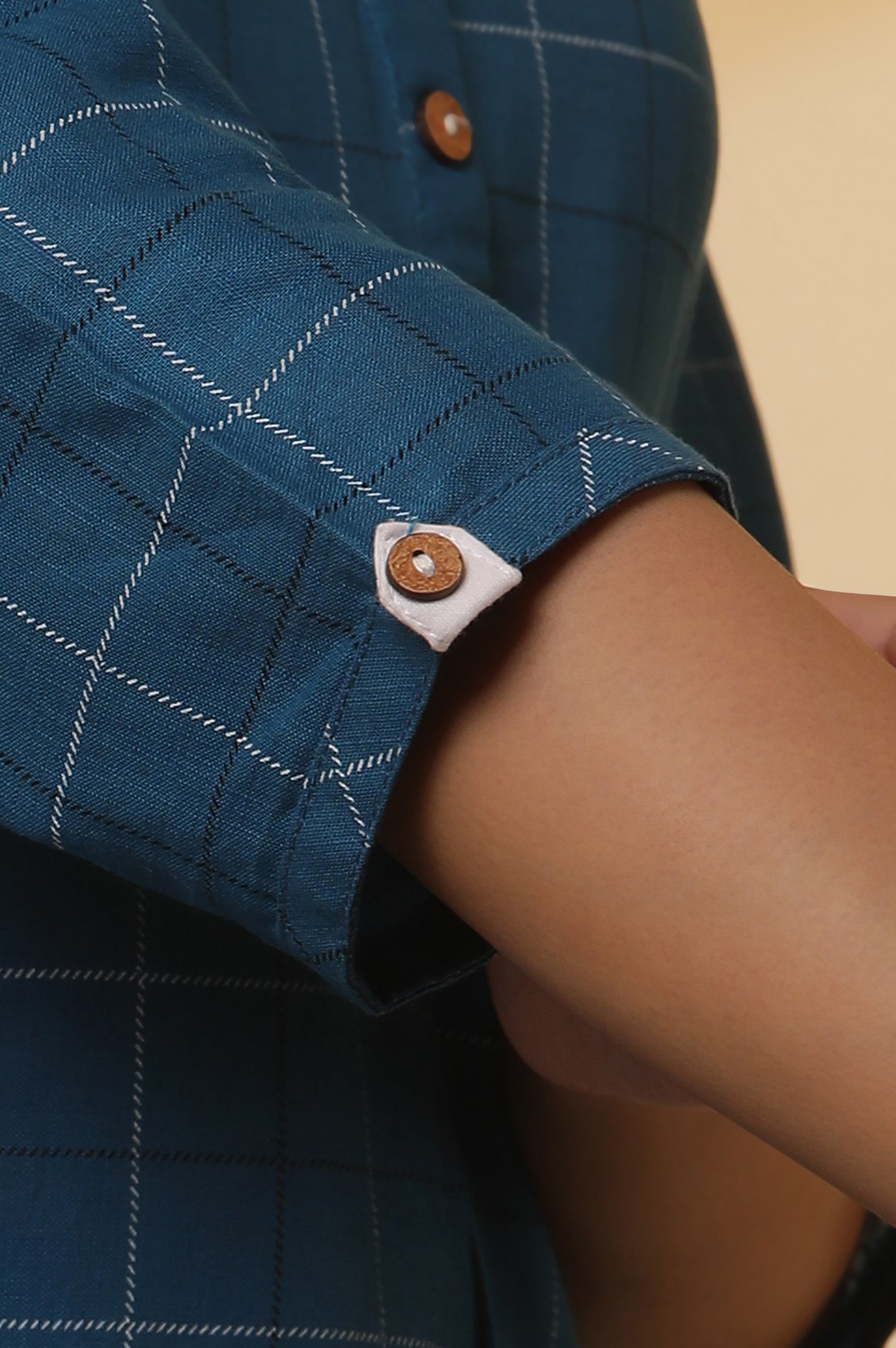 Blue Checker Cotton Shirt Kurta and Culottes Set