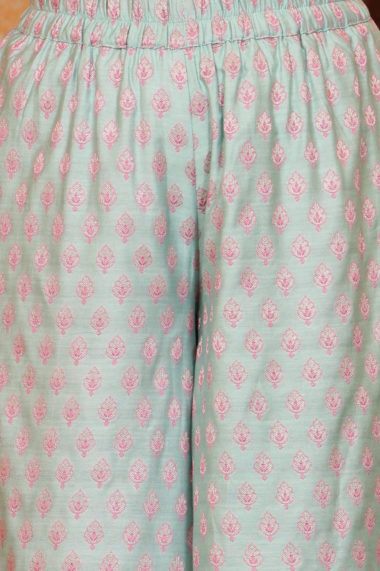 Blue Ethnic Motifs Embellished Straight Jacquard Spaghetti Crop Top, Jacket and Palazzo Set