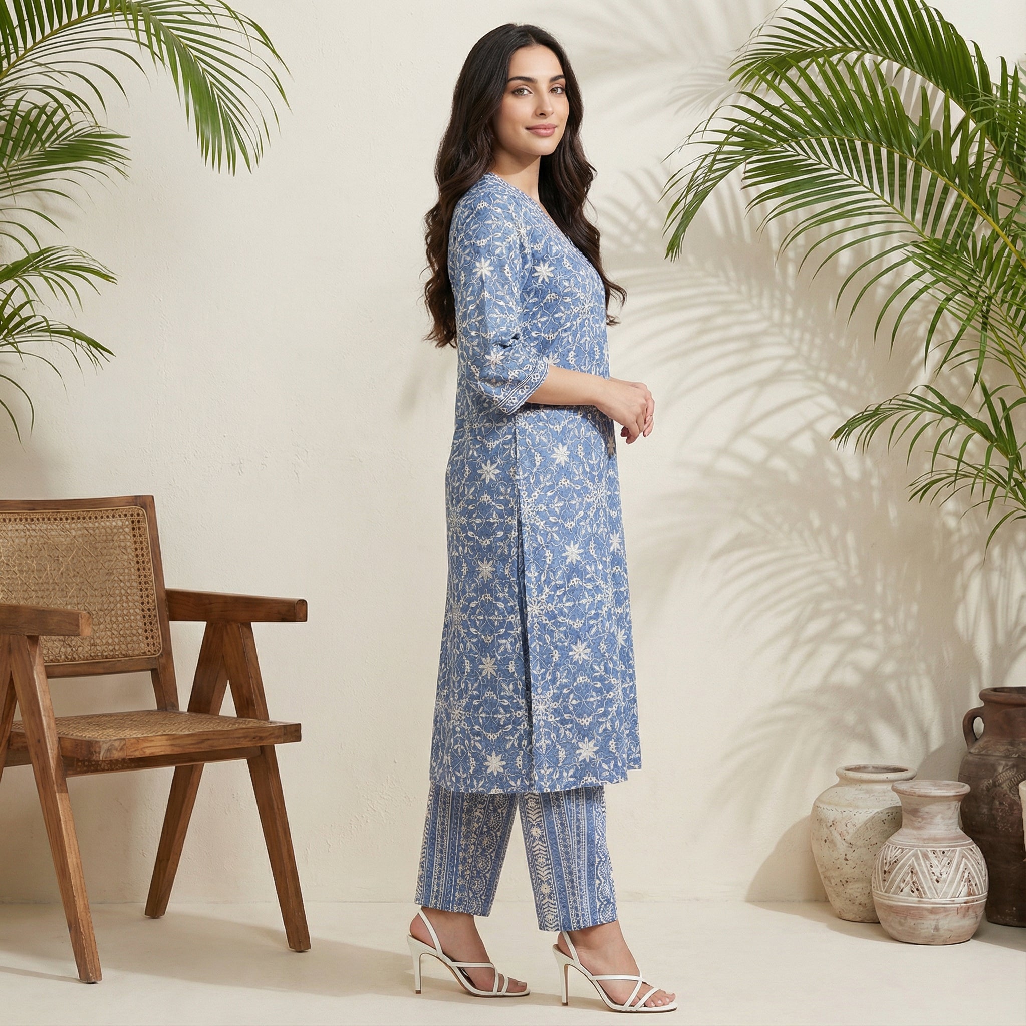 Elevate your everyday wardrobe with this blue viscose kurta set. Featuring a straight-cut kurta adorned with intricate floral prints and paired with comfortable palazzo bottoms, this set is perfect for casual outings or office wear. The breathable fabric ensures all-day comfort while keeping your style effortlessly chic.