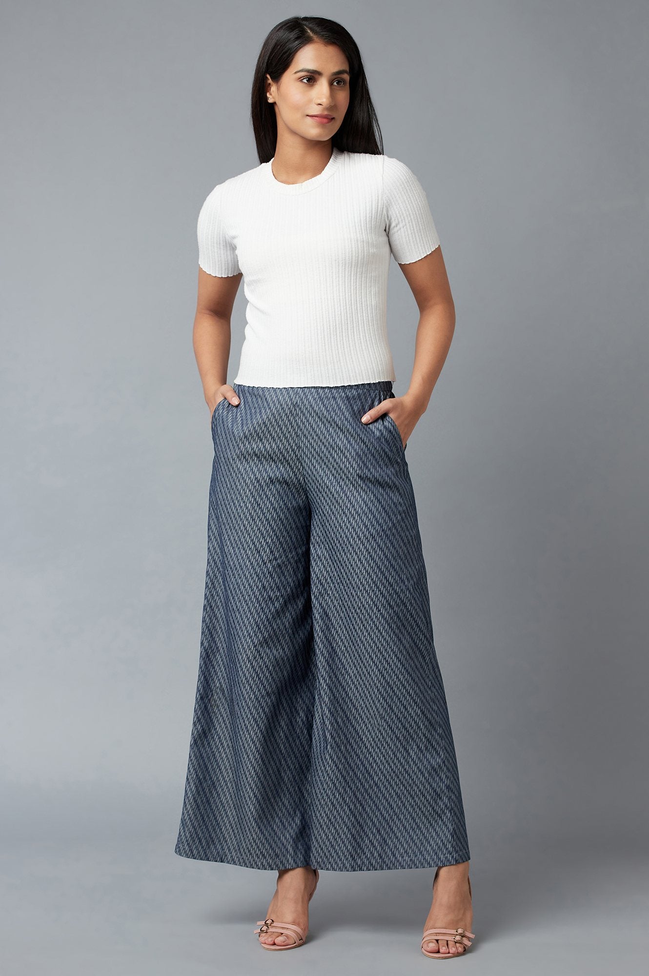 Blue Geometric Printed Flared Cotton Palazzo With Elasticated Waist
