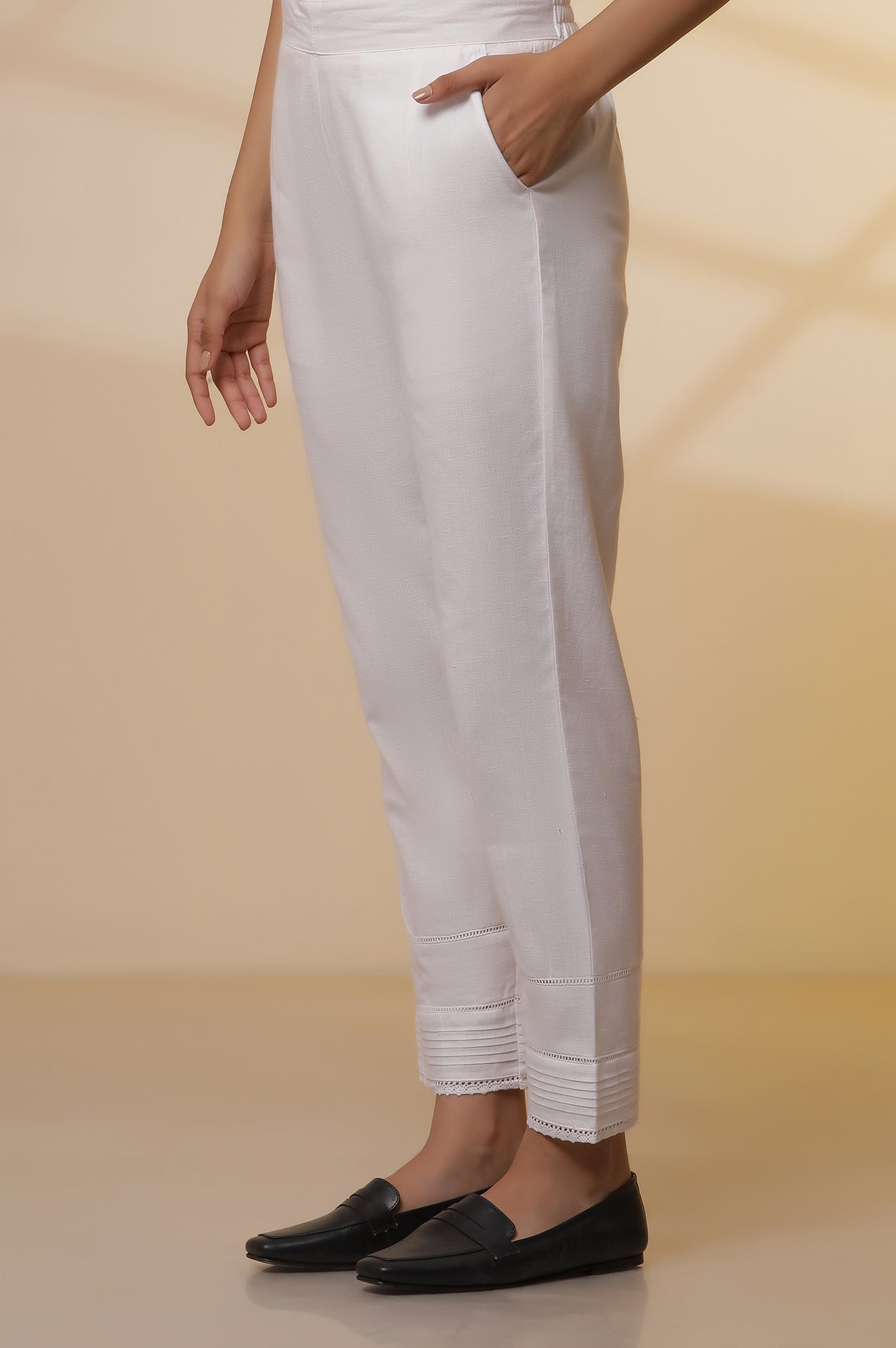 If you are looking for something casual yet with a slight bling on it then this is a perfect straight kurta for you, cotton with lurex shimmer apt for a little festivity this season. The kurta comes with white solid pintuck pants.