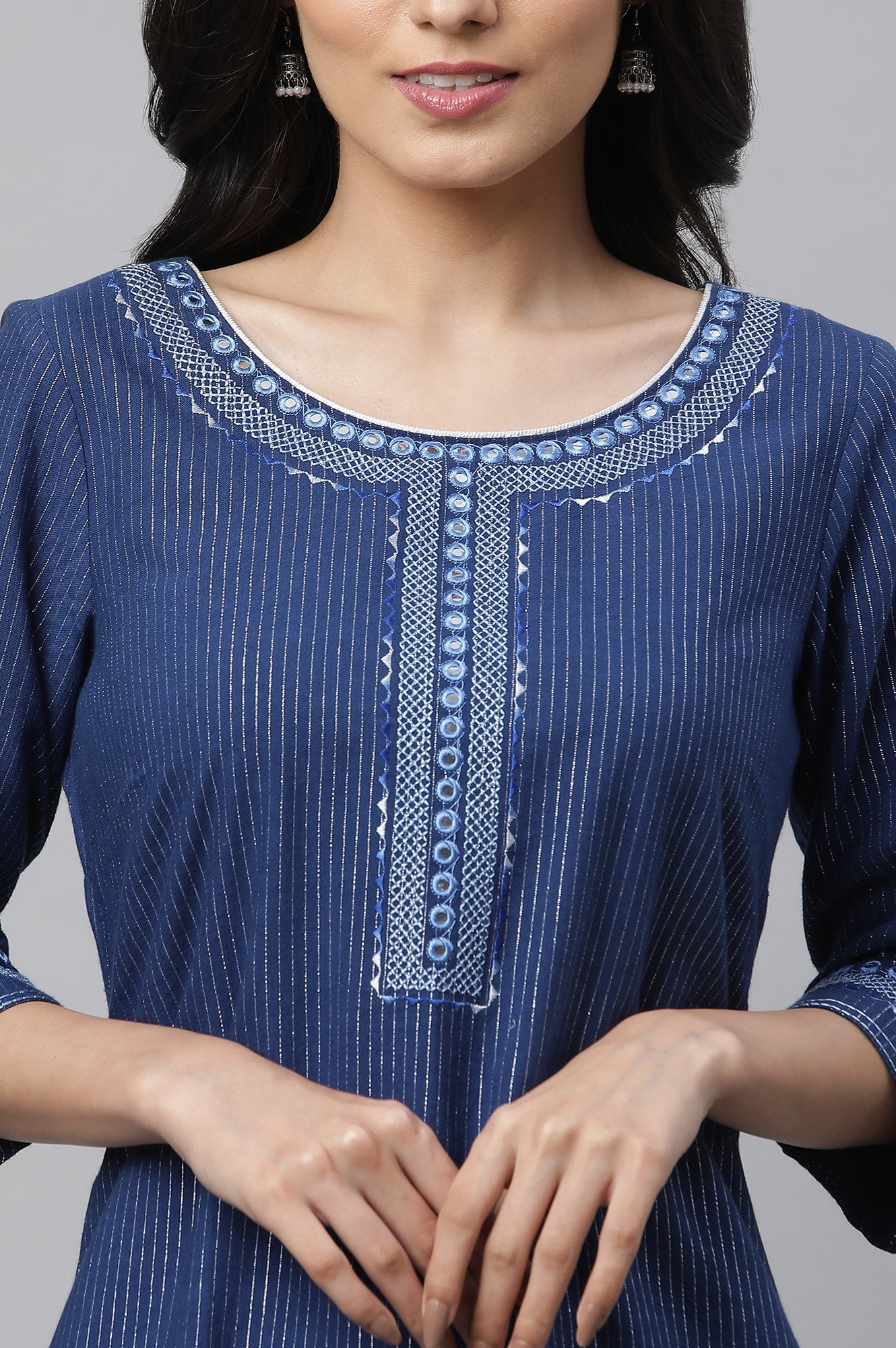 If you are looking for something casual yet with a slight bling on it then this is a perfect straight kurta for you, cotton with lurex shimmer apt for a little festivity this season. Team it up with a basic trouser and you are done.