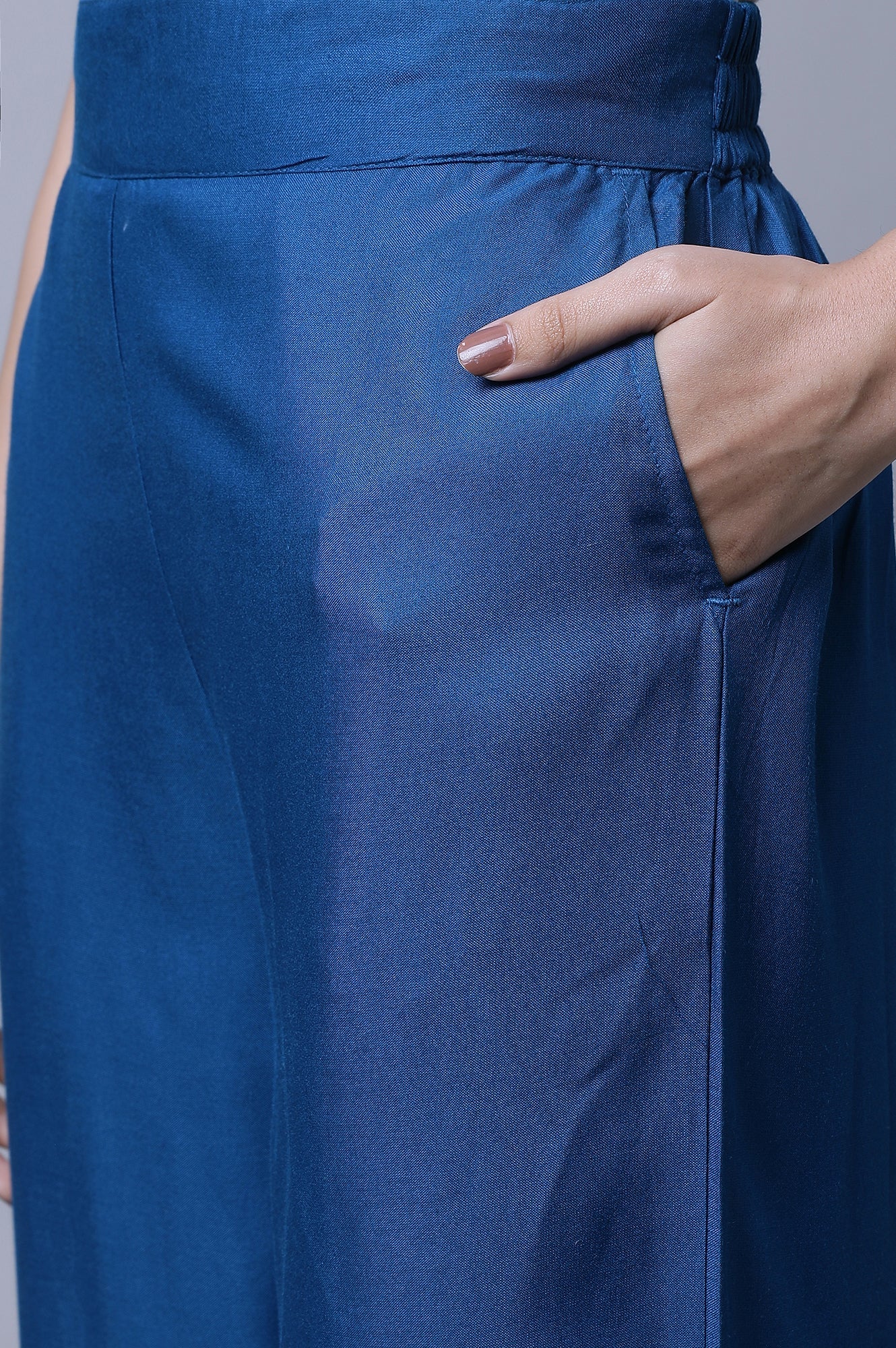 Blue Narrow Palazzo With Pleats
