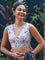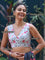 The model is wearing size S blouse and the saree is Blue Fuchsia Fiza.