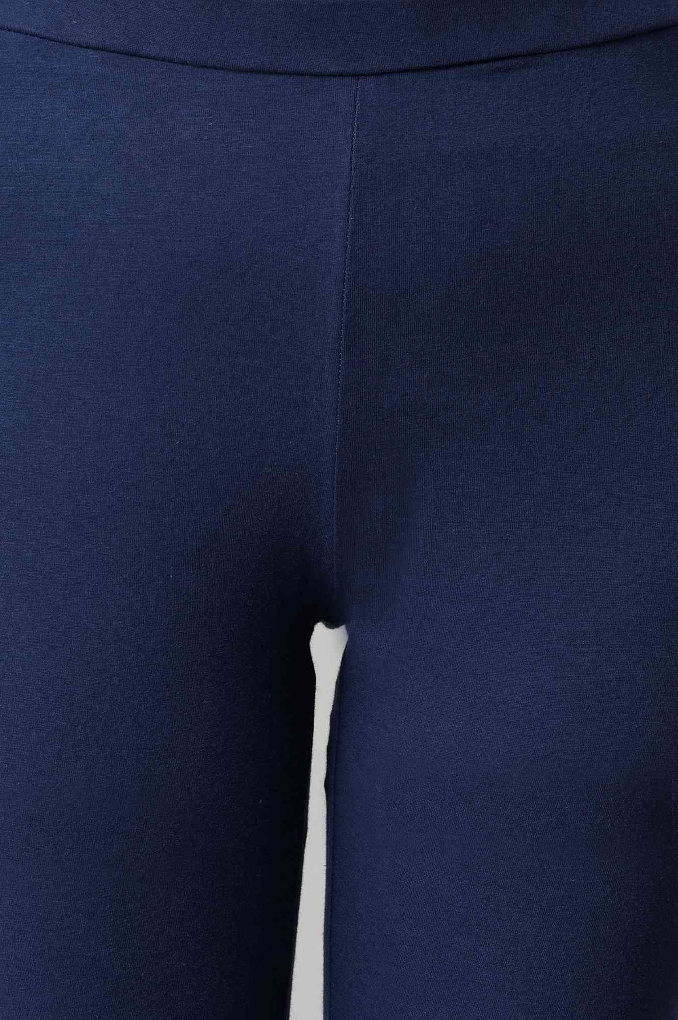 Midnight Blue Print Mix Cowl kurta With Mandarin Collar Paired With Tonal Knitted Tights