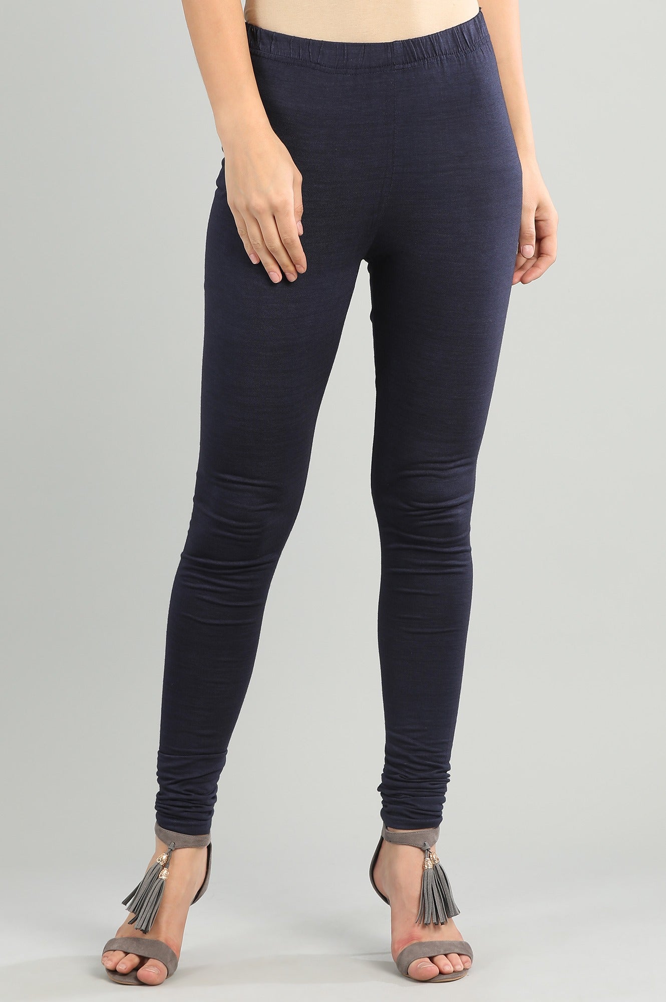 Blue solid churidar with elasticated waistband. It is made up of cotton jersey.