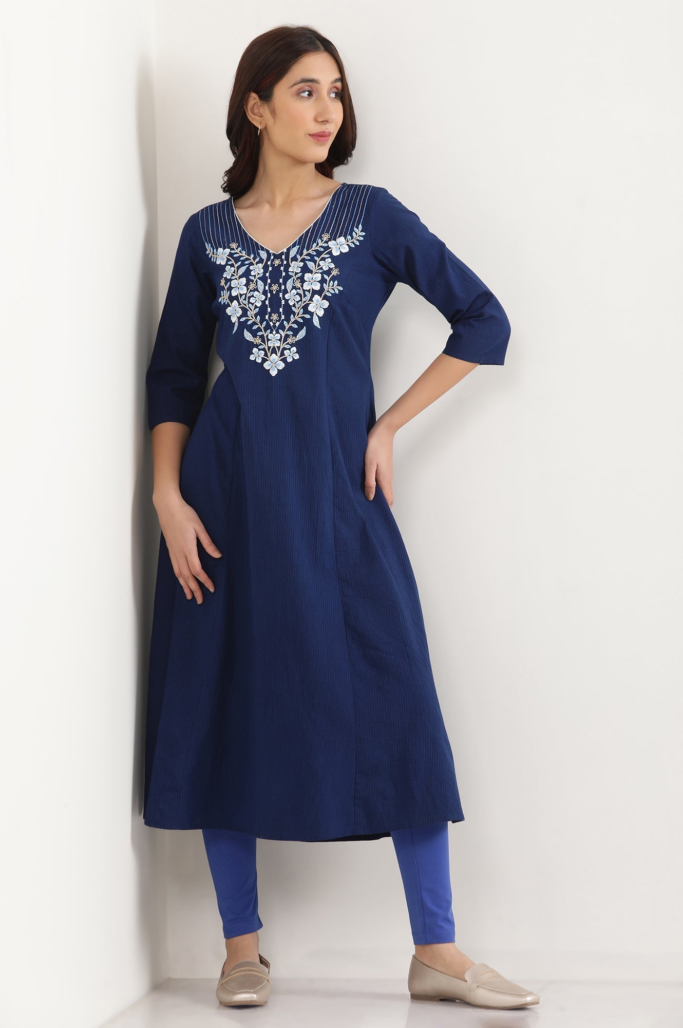Crafted for effortless style and comfort, these blue solid tights are a wardrobe essential. Made from a soft cotton lycra blend, they feature a mid-rise elasticated waistband for a secure fit and two functional side pockets for added convenience. The knit fabric ensures a smooth finish and a flattering skinny fit, making them perfect for casual outings or relaxed days at home. Pair them with a white kurta and flats for a chic, comfortable look.