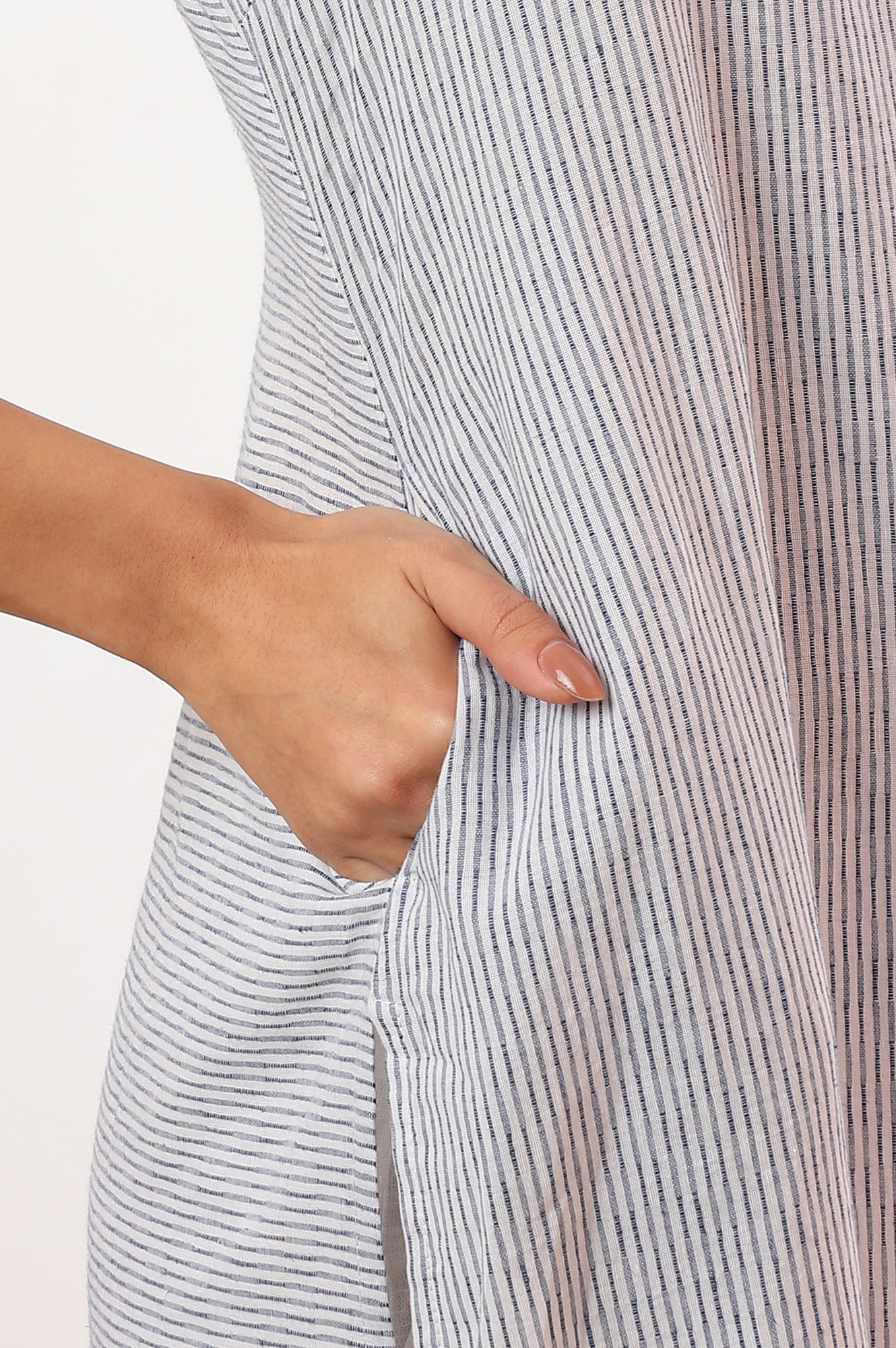Elevate your casual wear collection with this exquisite fusion kurta from Aurelia. Made from a luxurious blend of 90% cotton and 10% flax, this below-knee length kurta offers unparalleled comfort and style. The straight cut silhouette creates a sleek and flattering look, while the spread neckline adds a contemporary touch. The three-quarter sleeves provide versatility for various occasions and seasons. Featuring a thoughtful slit detail, this woven kurta combines functionality with fashion. The vibrant blue color makes a bold statement, perfect for the confident woman. Crafted using advanced construction techniques, this kurta ensures durability and longevity. The cotton-flax blend offers breathability and a soft texture, making it ideal for all-day wear. Whether you're running errands or meeting friends for a casual outing, this Aurelia kurta is the perfect choice for the modern, fashion-conscious woman.