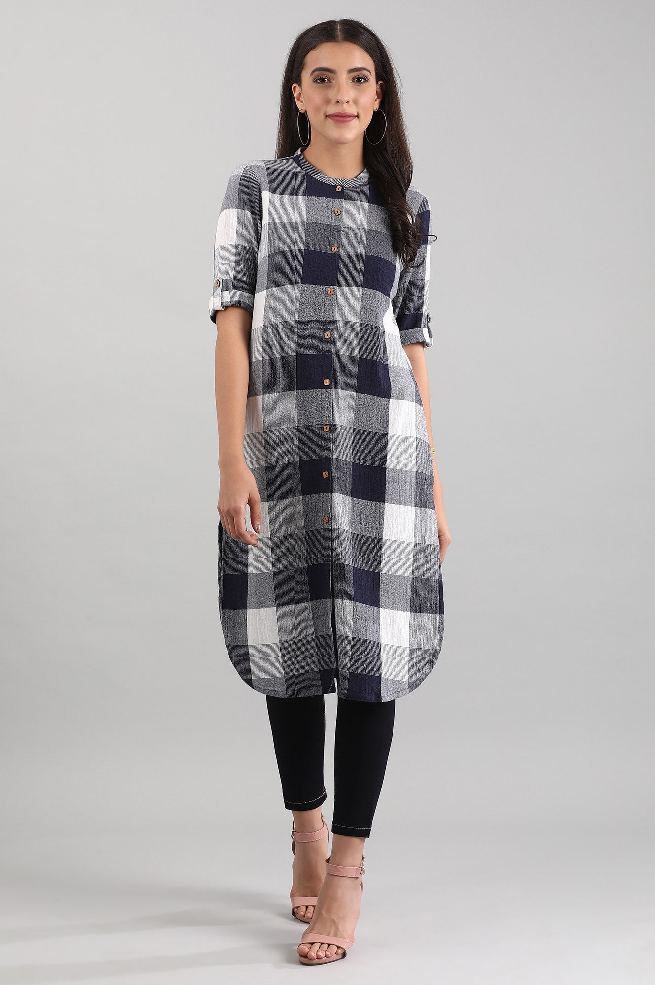 Blue solid regular fit yarn-dyed trousers with functional pocket detail and button closure.