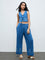 A fresh expression of everyday dressing, this blue top from Bombay Paisley showcases vibrant floral embroidery that adds a subtle indo western touch. Shaped with a V neckline, it features a tie up front and a sleeveless profile for a balanced design. Crafted from a cotton-rich fabric, it offers breathable comfort that suits relaxed daytime styling.