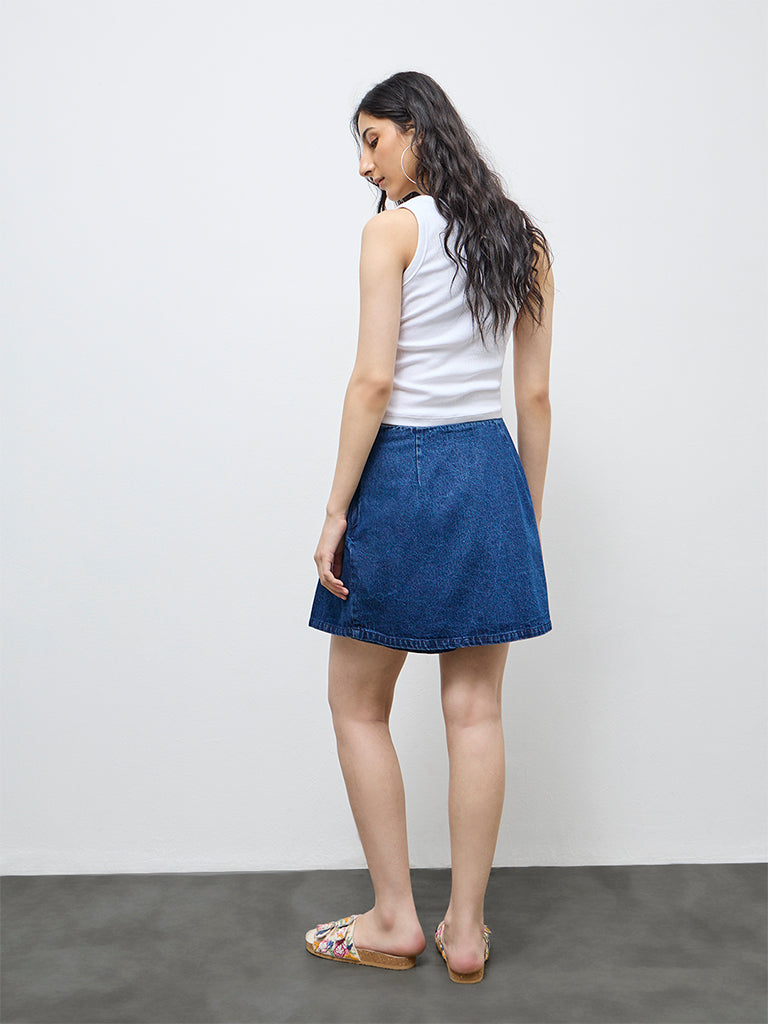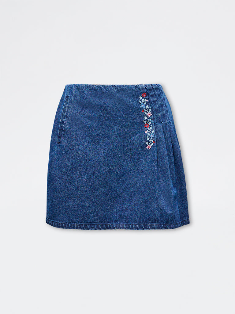 Bombay Paisley Blue Floral Embroidered Denim Skirt