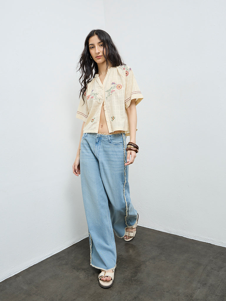 Bombay Paisley Cream Floral Embroidered Cotton Top