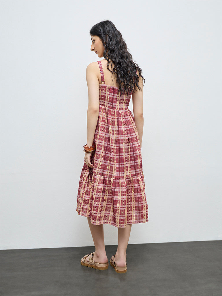 Bombay Paisley Dusty Pink Embroidered Cotton Tiered Dress