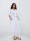 Bombay Paisley presents this ivory shirt showcasing nature-inspired prints for a breezy, daytime finish. Milled from a sumptuous cotton-linen blend, it features a notched lapel that extends into a button-up front, paired with half sleeves for a relaxed fit.