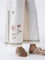 Cut from a breathable cotton-linen blend, these off-white pants from Bombay Paisley balance comfort and craftsmanship. They feature intricate embroidery that lends subtle texture and charm. Designed with a smooth elastic waistband and practical side pockets, the high-rise silhouette ensures an easy, flattering fit.