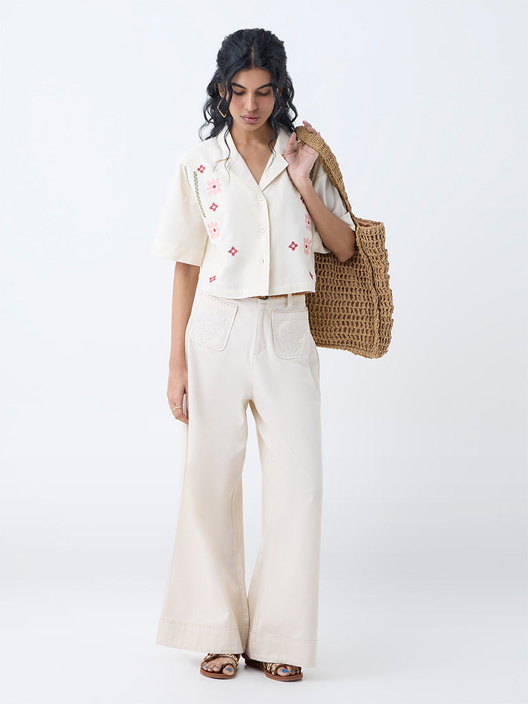 Bombay Paisley Off-White Embroidered Cotton-Blend Shirt