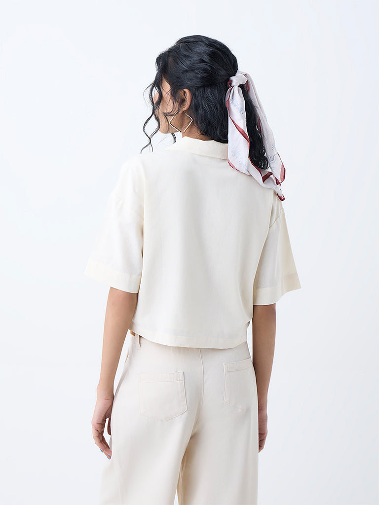 Let your style reach new heights with this off-white shirt from Bombay Paisley. Spun from a cotton-rich fabric, it spotlights cross-stitched embroidery for subtle detailing. A notched lapel collar flows into a button-up front, while short sleeves keep the silhouette fresh and easy-going.