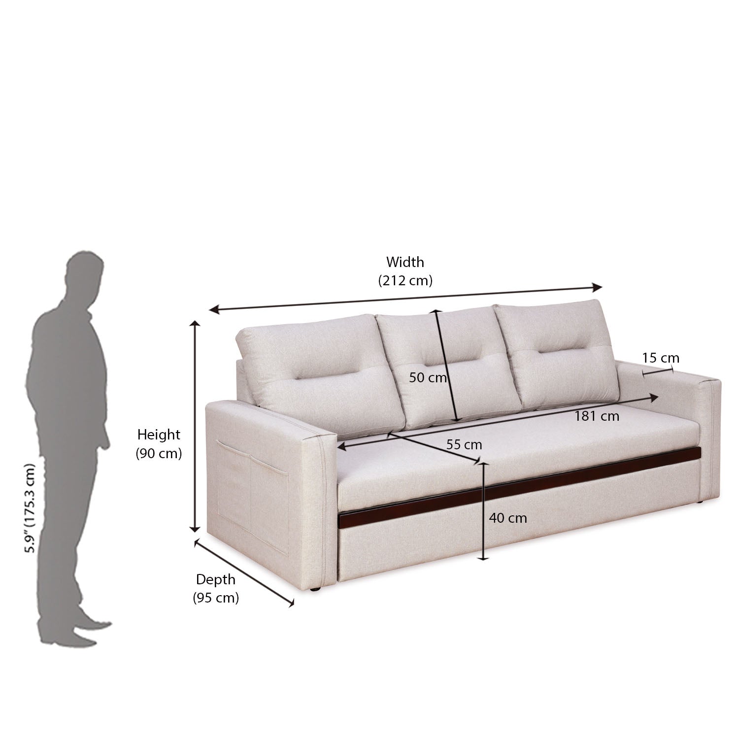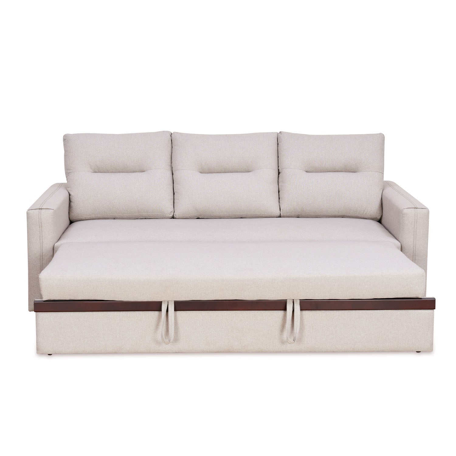 Boxton Fabric 3 Seater Sofa Cum Bed With Side Pockets (Light Brown)