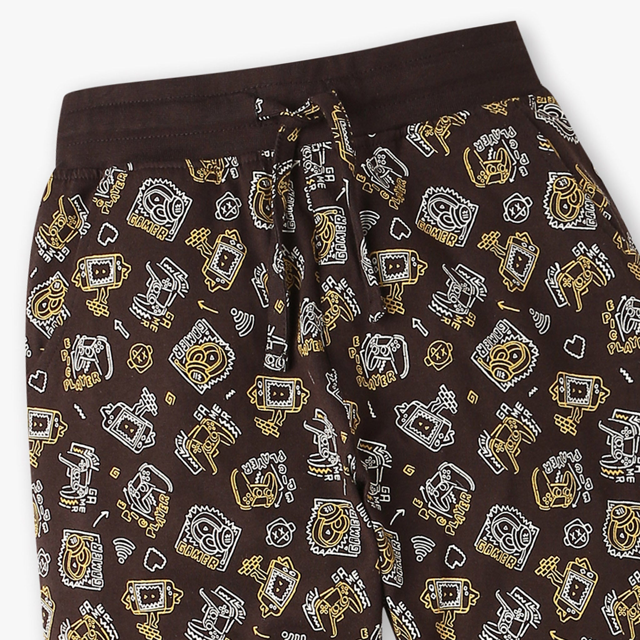 Boys All Over Print Crew Neck T-Shirt With Trackpant Sleepwear Set