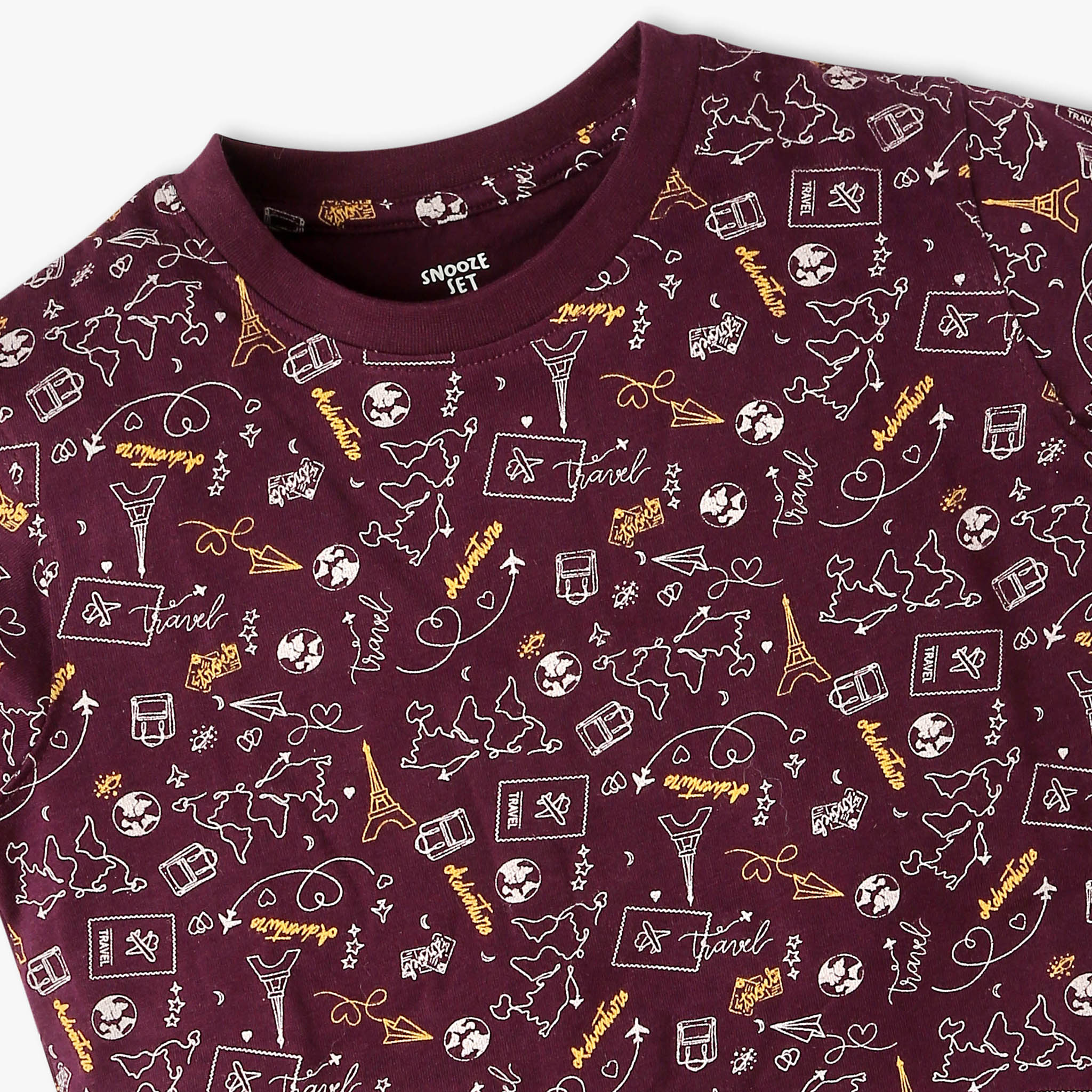 Boys All Over Print Full Length Crew Neck Half Sleeve T-Shirt With Short Sleepwear Set