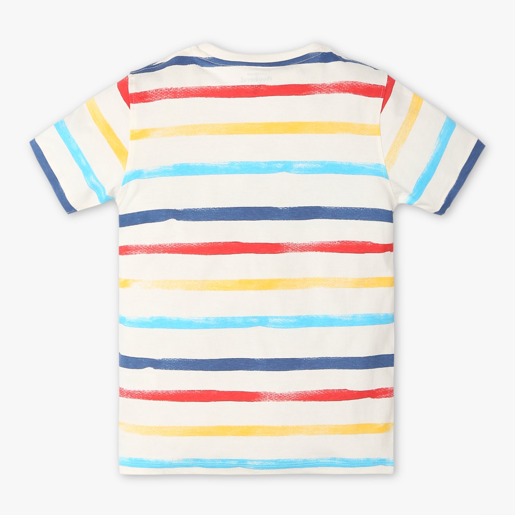 Experience the perfect blend of comfort and style with our Boys Regular Fit Striped Crew Neck Half Sleeve T-Shirt. Crafted from 100% cotton, this t-shirt offers a soft touch against the skin, ensuring all-day comfort for your little one. The classic striped pattern adds a touch of timeless style, making it a versatile choice for any occasion.
