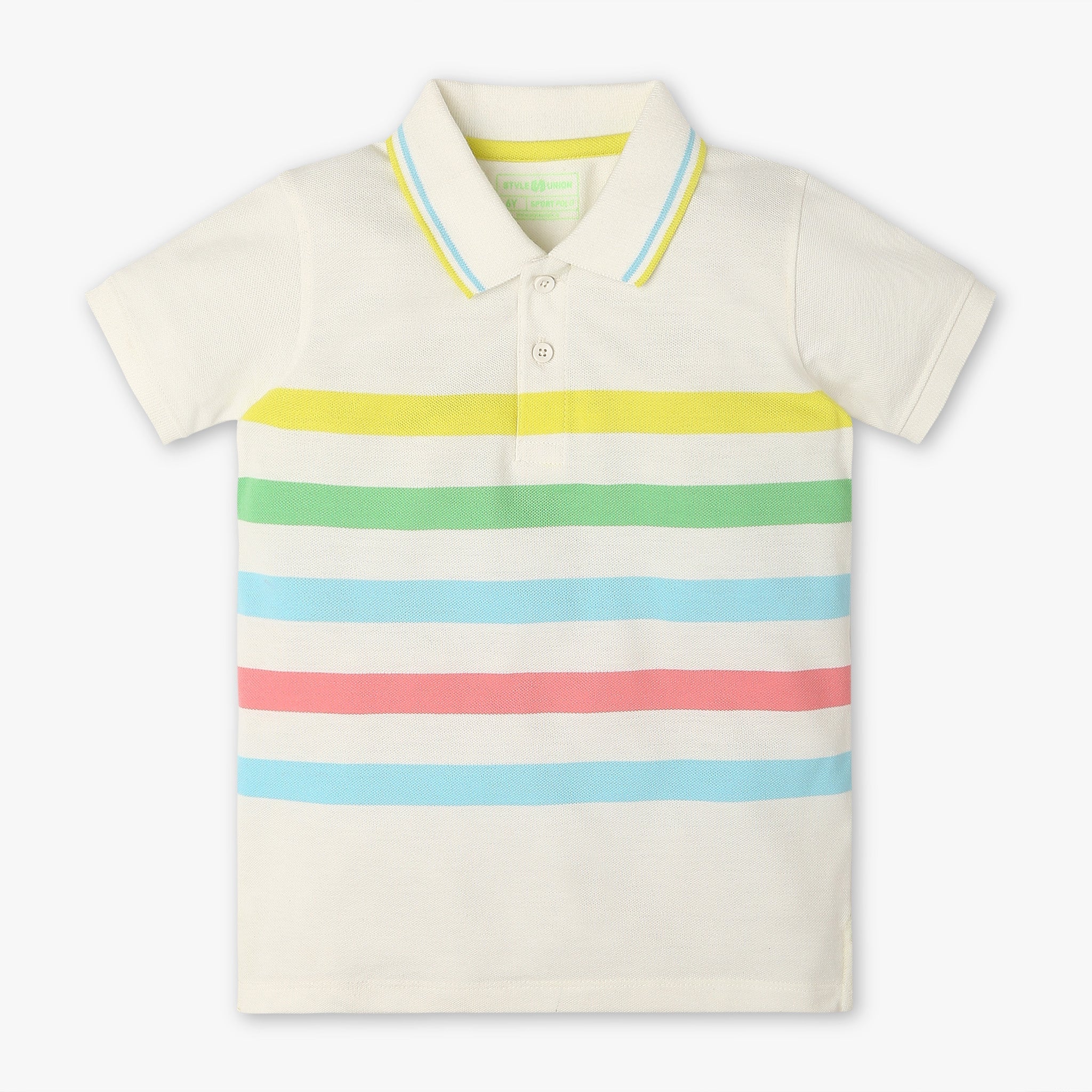 Boys Polo Neck Half Sleeve Yarn Dyed Sports Striped T-Shirt