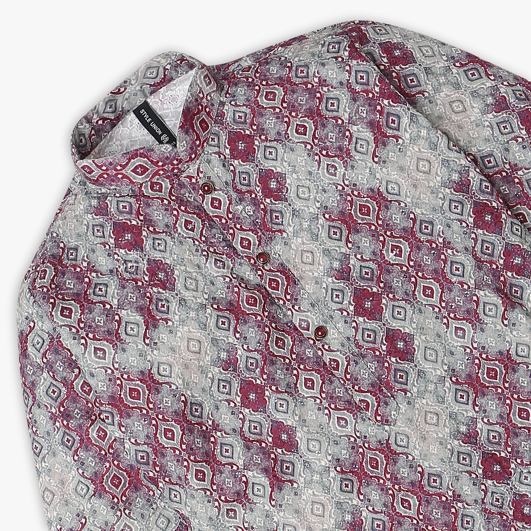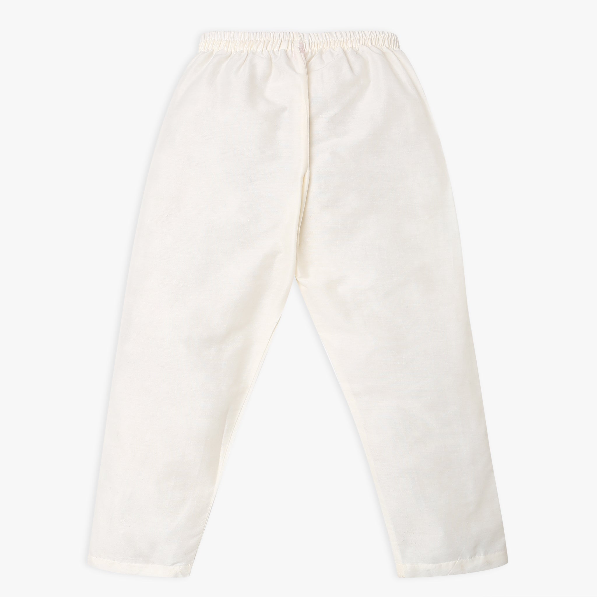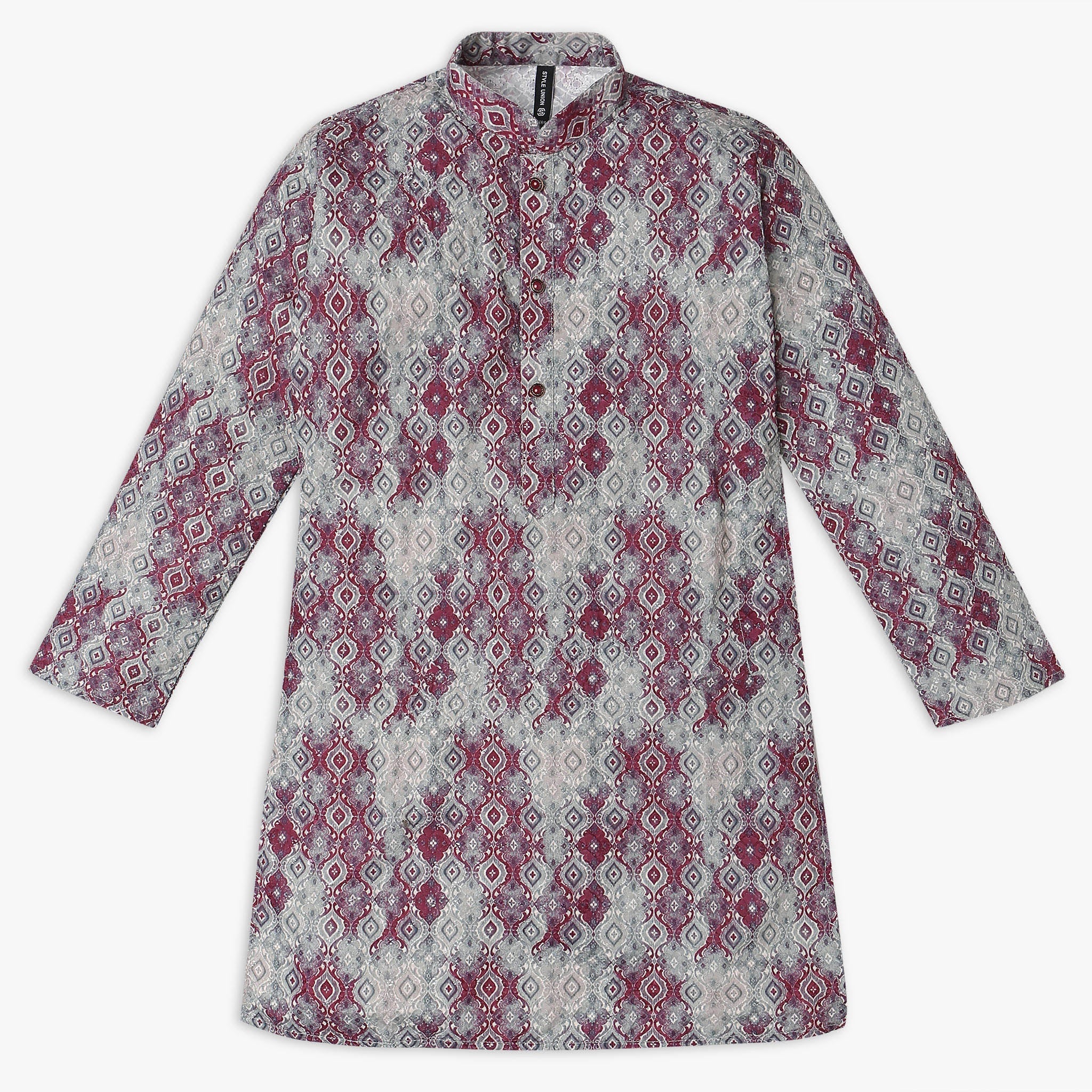 These printed pattern kurta with pant set has mandarin collar and full sleeve. Made from polyester cotton, your kid's feel comfortable wearing the product.