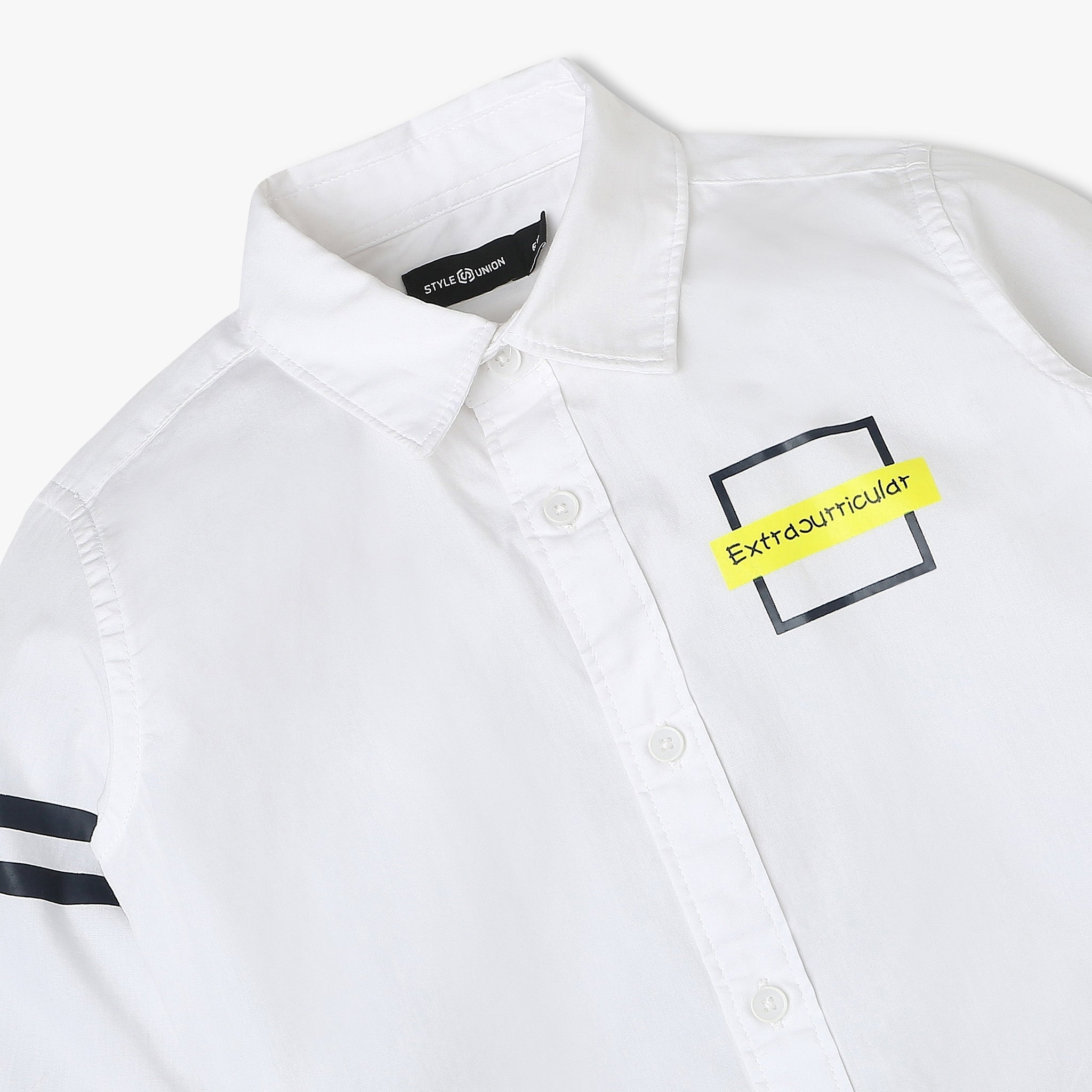 These solid pattern shirt has shirt collar and full sleeve. Made from cotton, your kid's feel comfortable wearing the product.