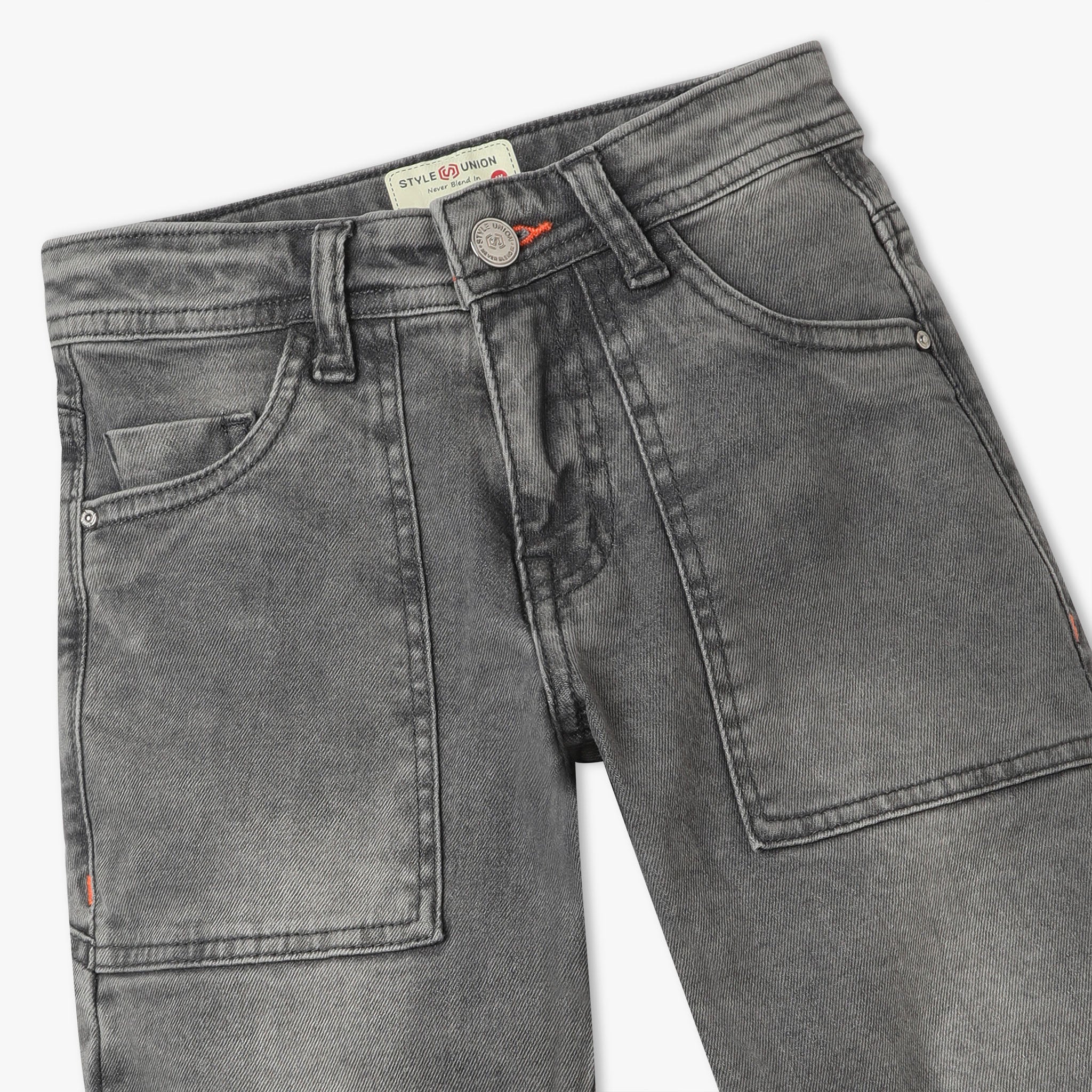 Boys Straight Fit Cut And Sew Full Length Cargo Jeans