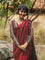The model is wearing size XS blouse and the saree is Crimson Chaaya & Moonlit Mehfil